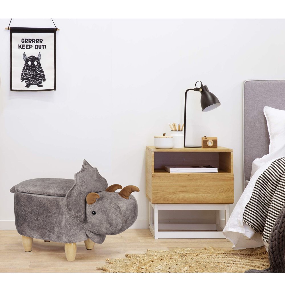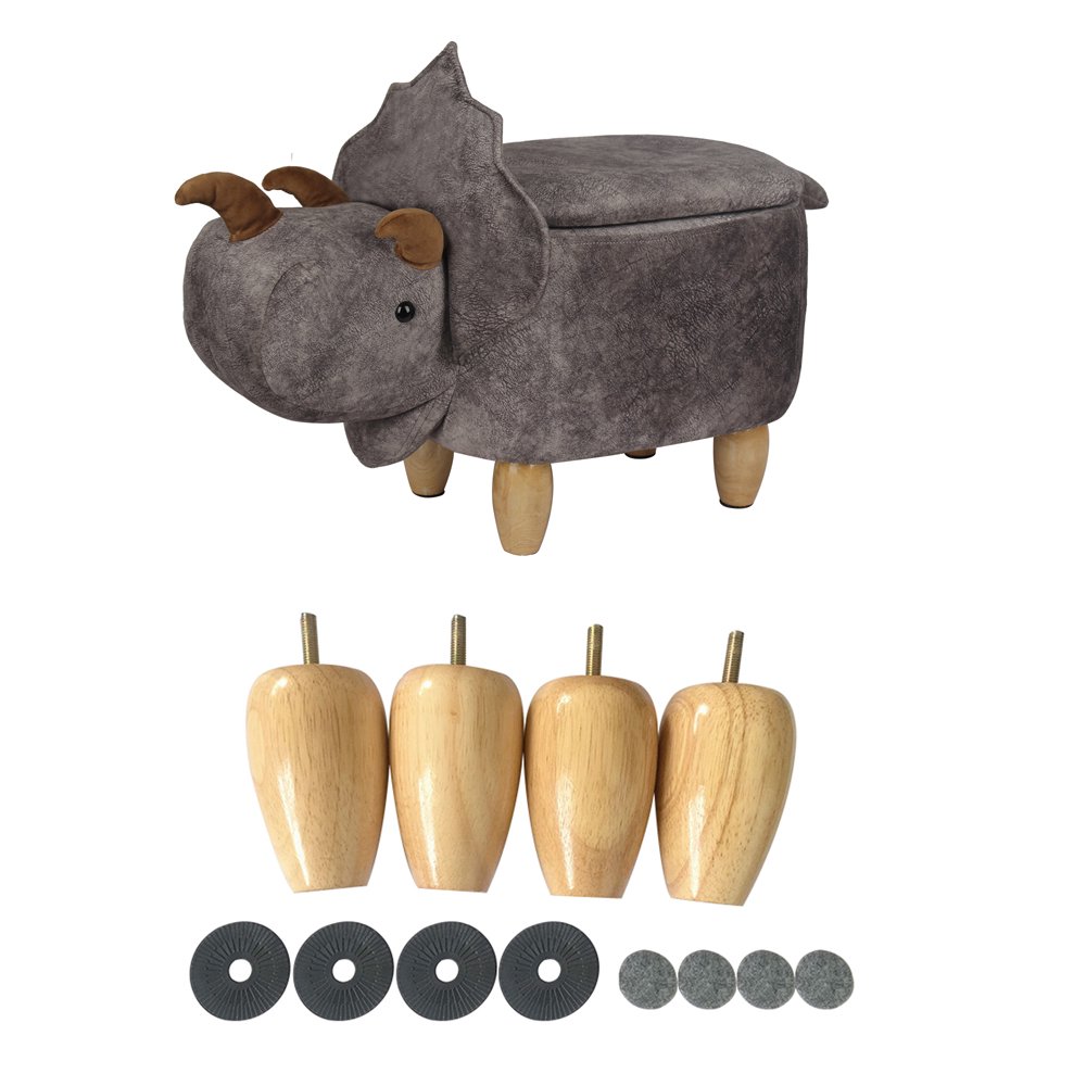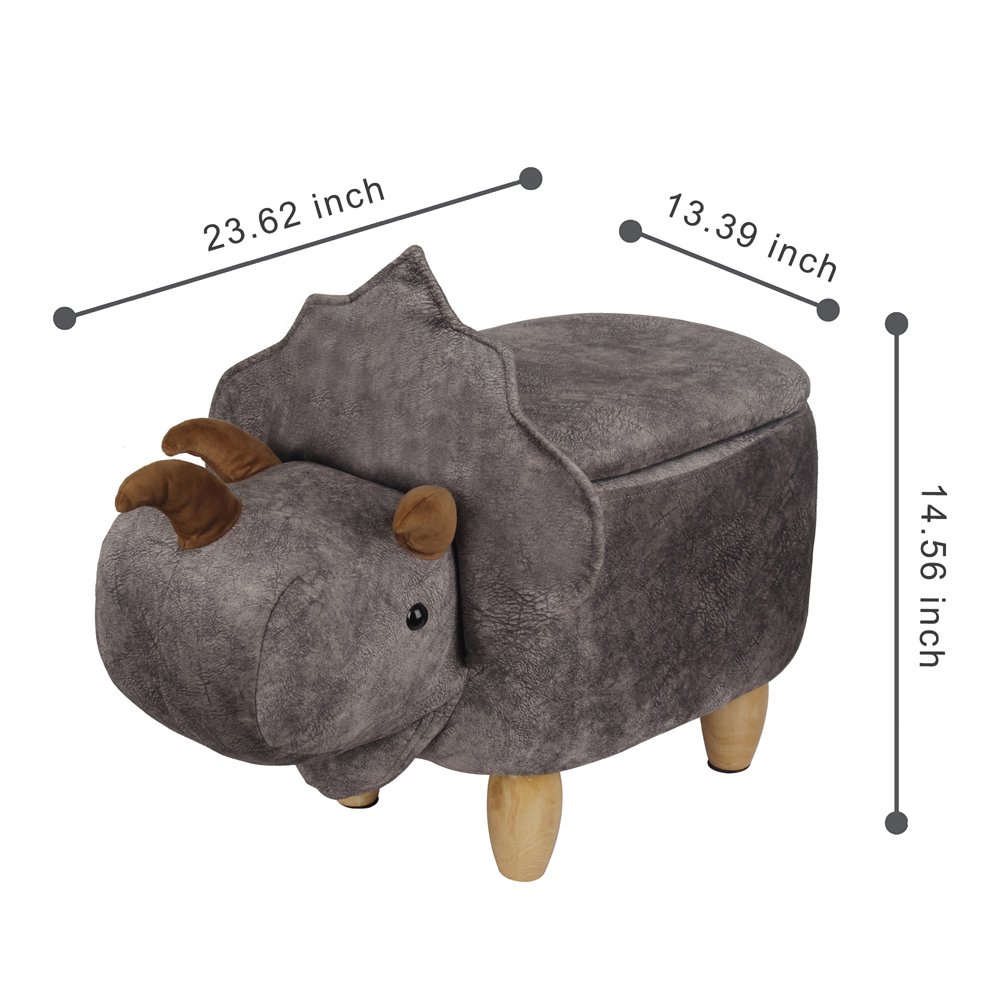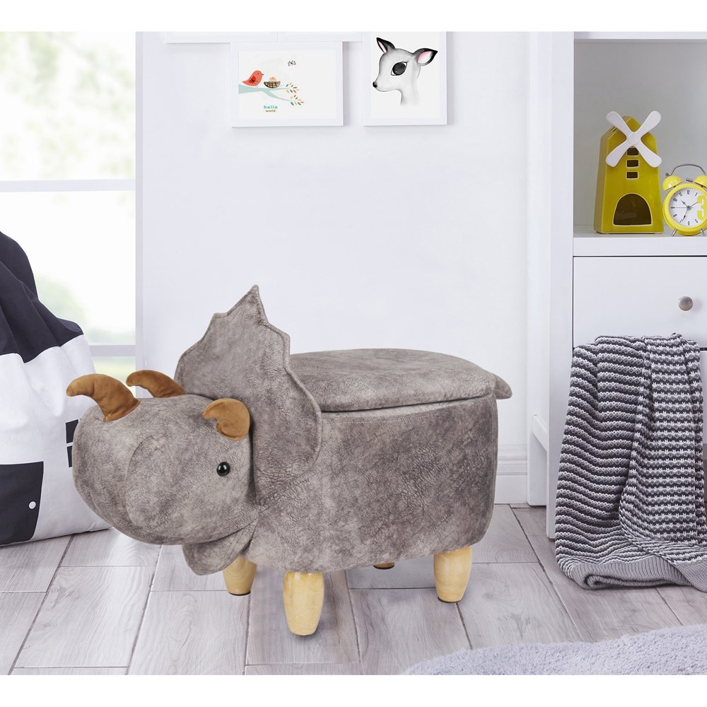 GIA Design Group Soft Plush Kids Animal Ottoman Stool with Storage. Cera Triceratops Dinosaur