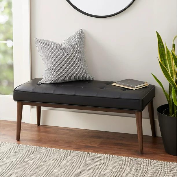 Better Homes & Gardens Colton Upholstered Bench. Black Faux Leather