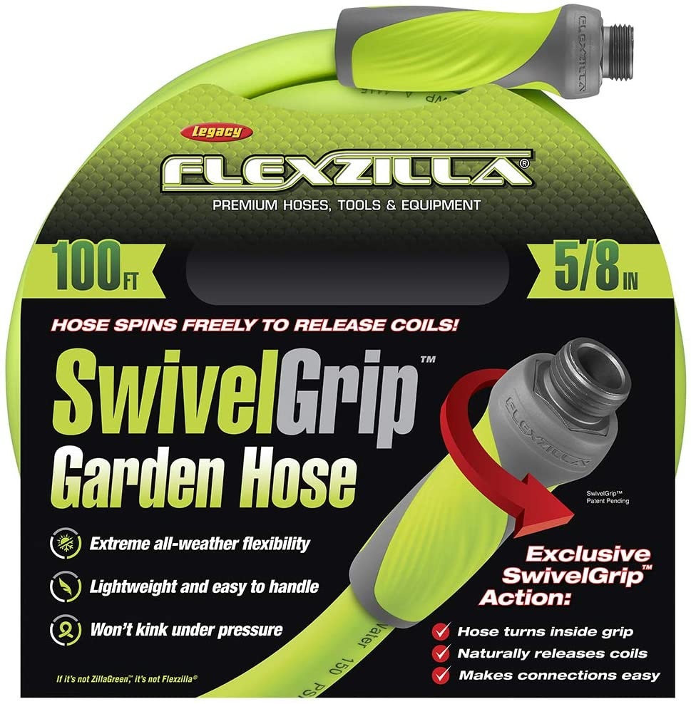 Flexzilla HFZG5100YWS Garden Hose. 5/8″ (inches) x 100′ (feet). ZillaGreen w/SwivelGrip