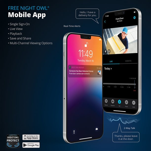 Night Owl Wi-Fi IP 1080p HD Spotlight Surveillance Bullet Cameras. 2-Way Audio Enabled. White