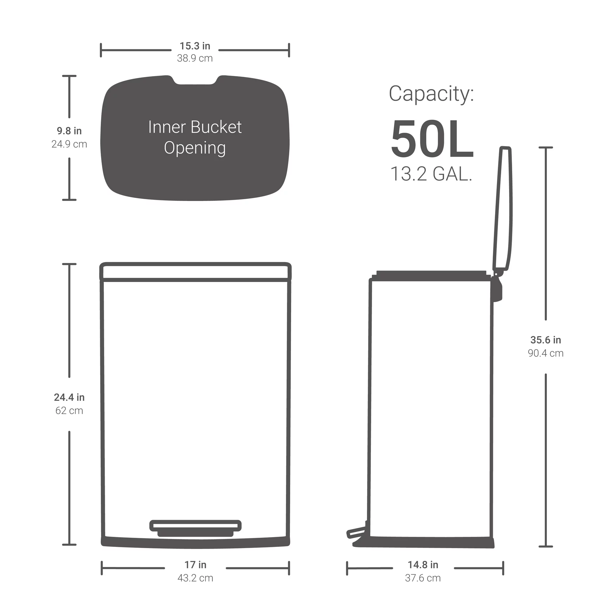 Qualiazero Rectangular Step Garbage Can. 3 Piece Combo. (1) 13.2 Gal . (2) 1.3 Gal. Stainless Steel
