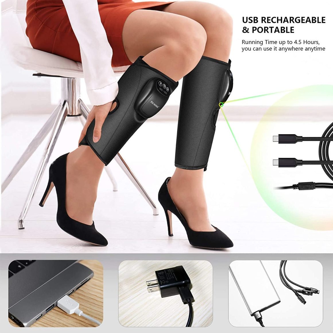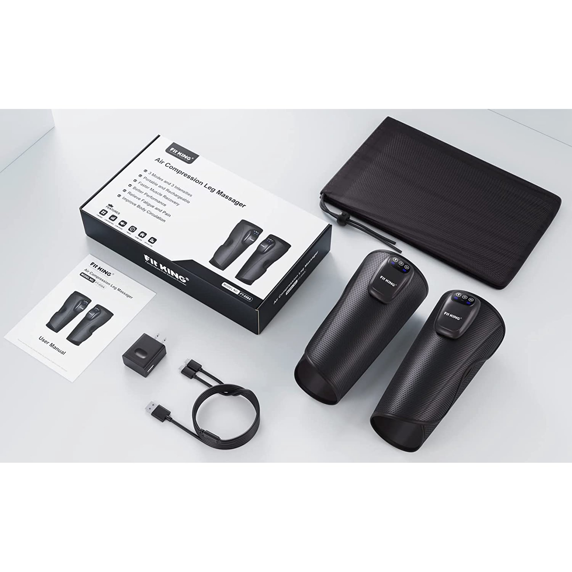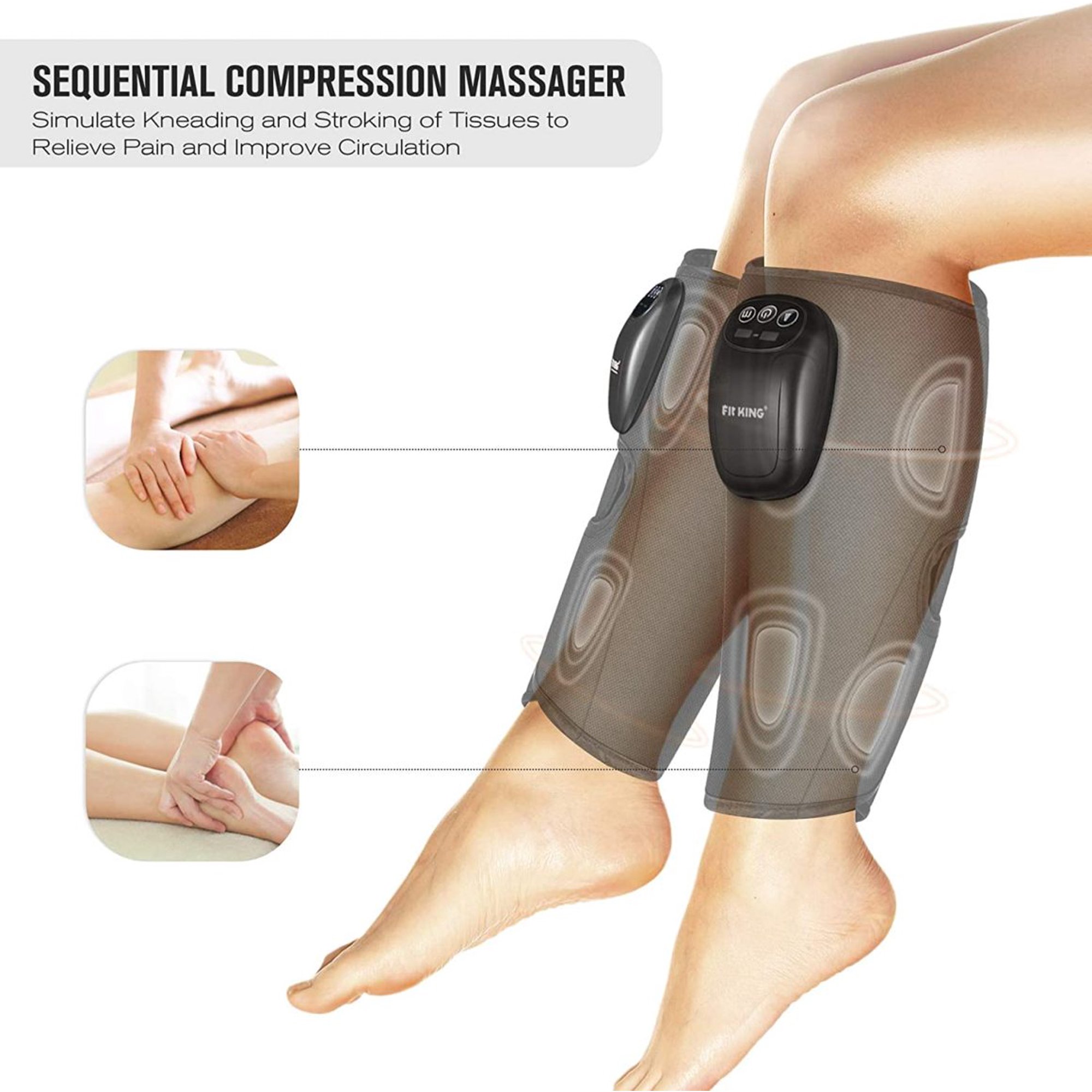 Fit King Cordless Leg Massager for Circulation Calf Massager with 3 Modes 3 Intensities (FT-058A)