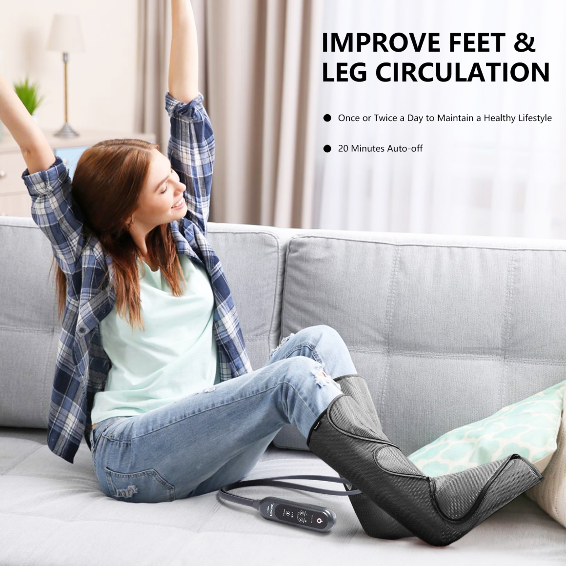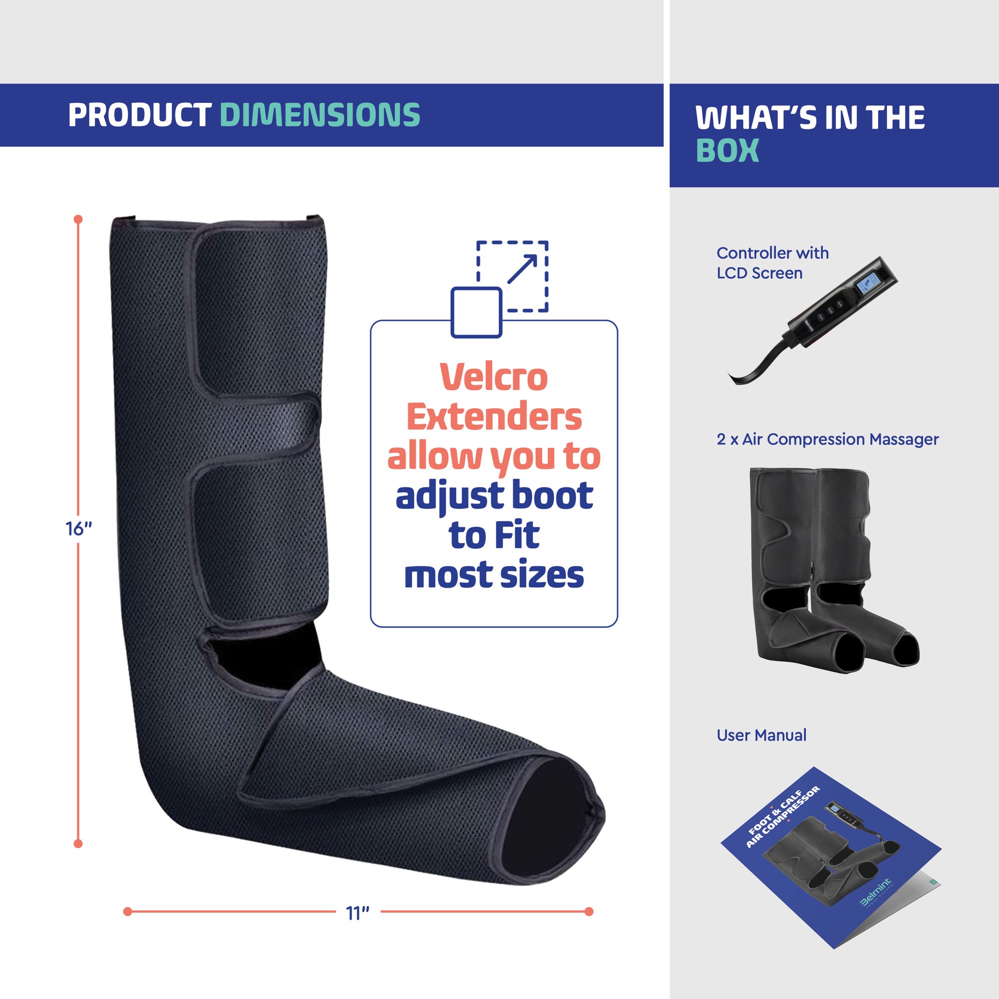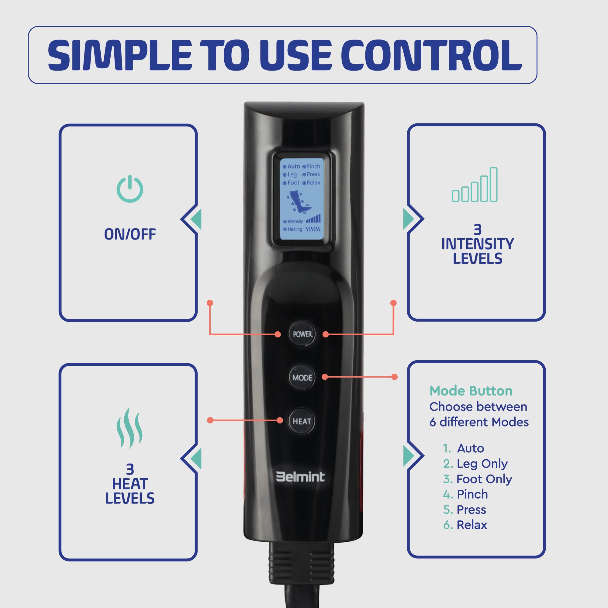 Belmint Leg & Foot Air Compression Massager with 3 Heat Settings. 6 Massage Modes and 3 Intensity Levels
