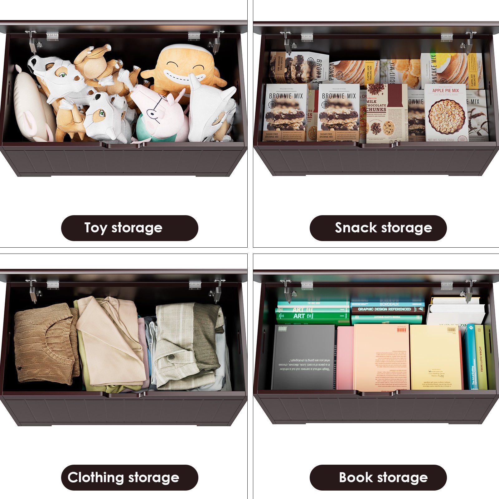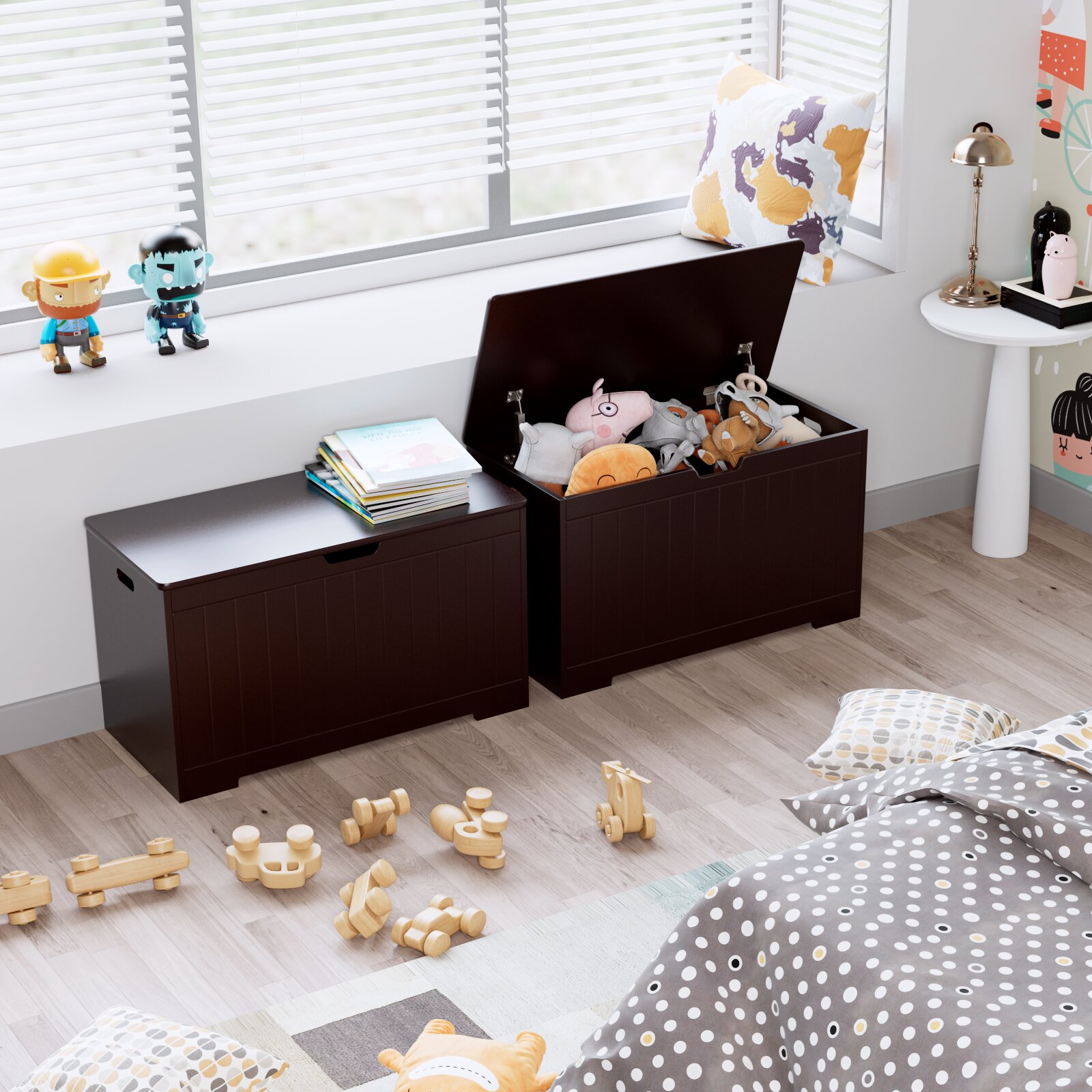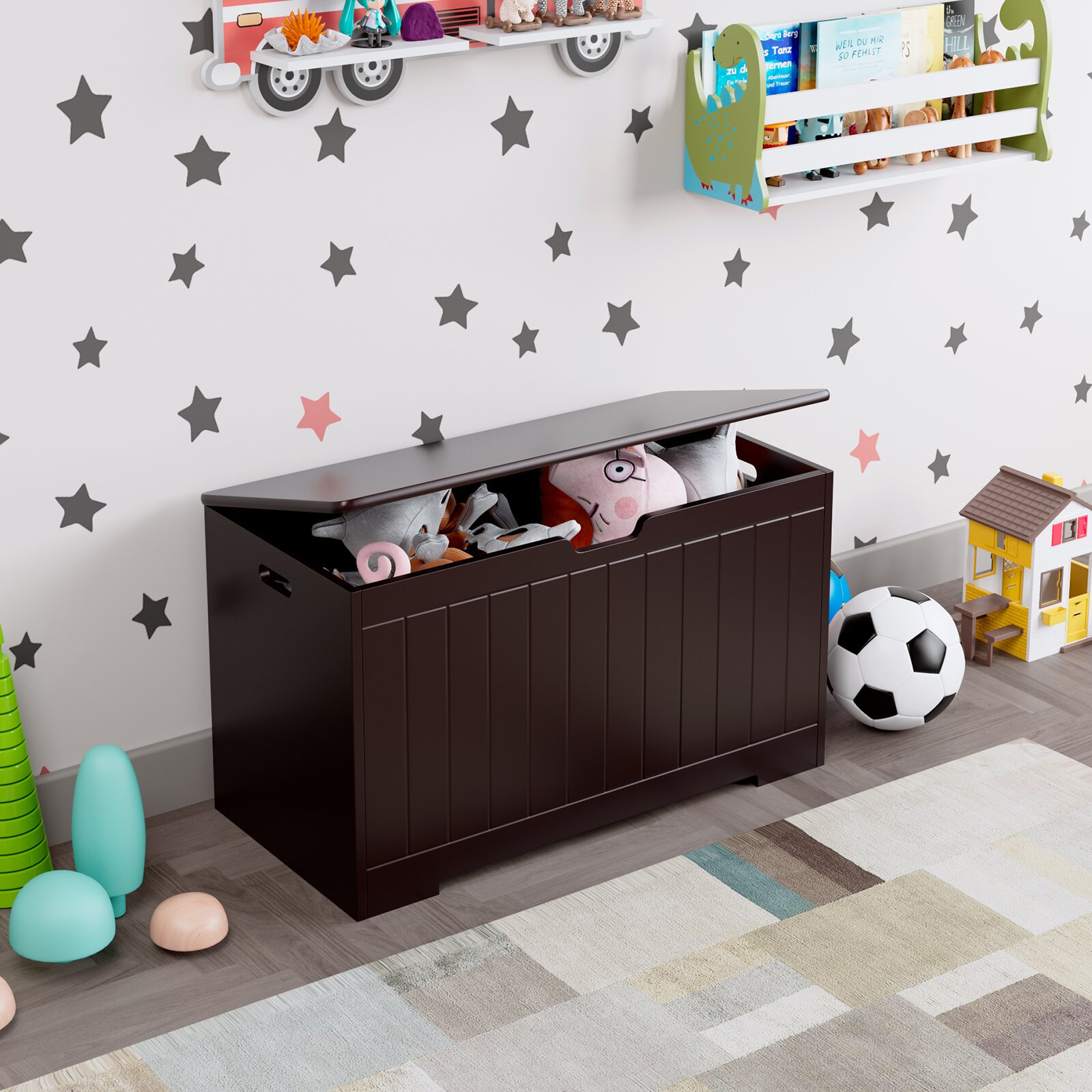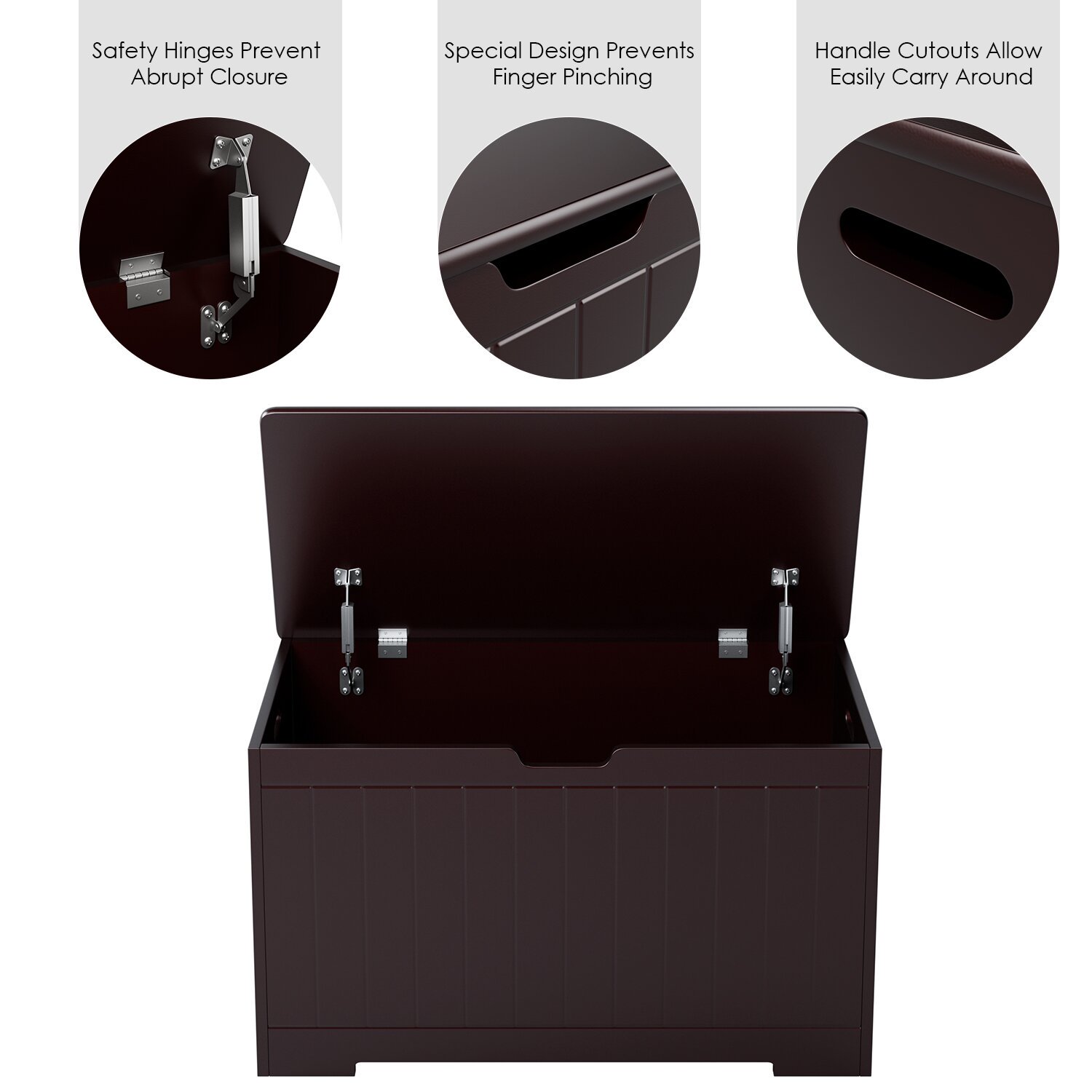 Homfa Kids Toy Box. Toy Storage Chest with 2 Safety Hinges. Flip-Top Lid Open and Close Slowly. Brown