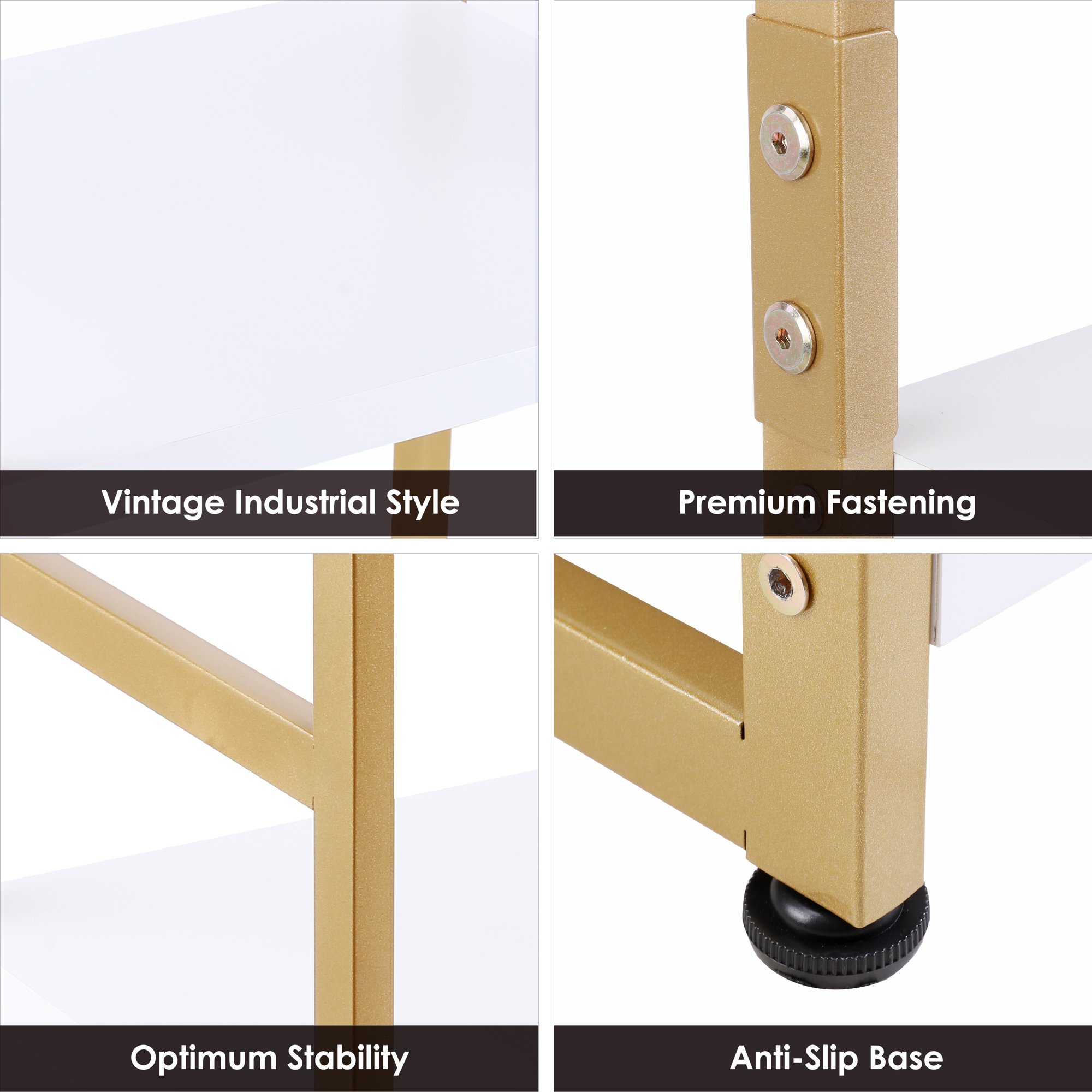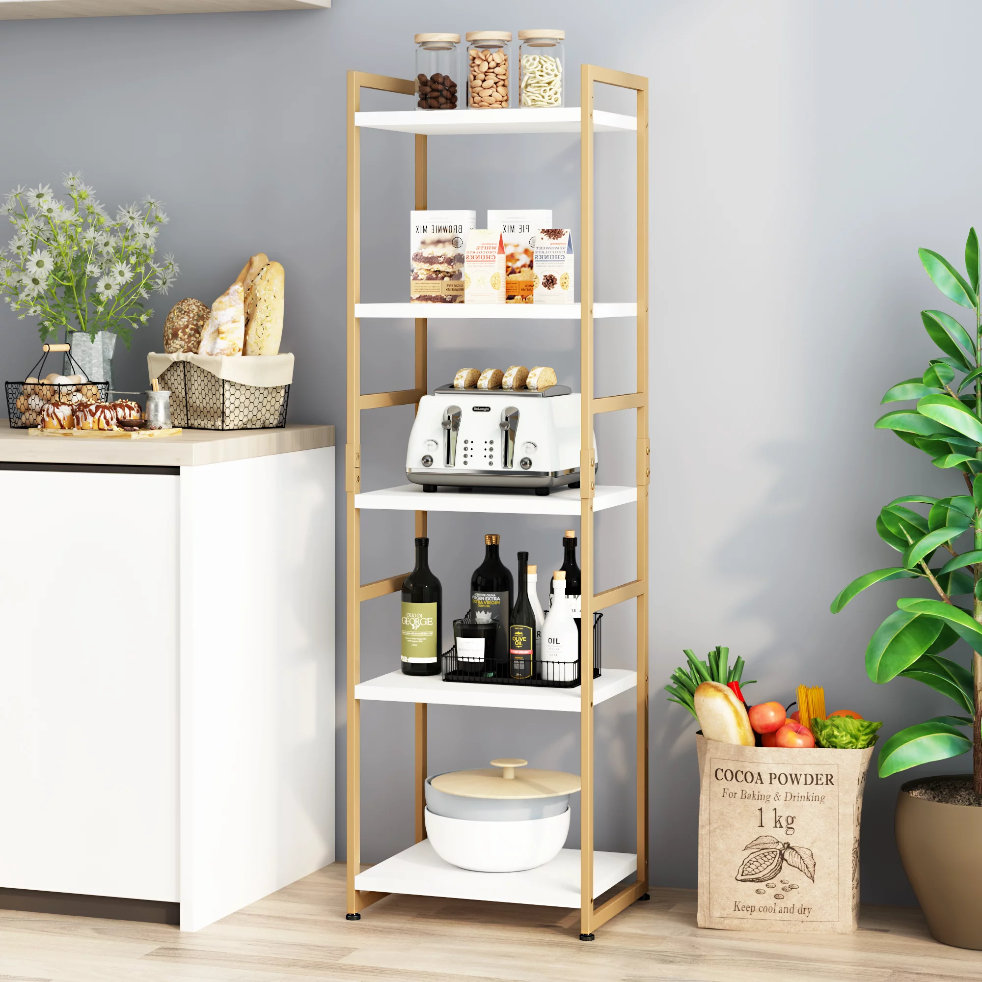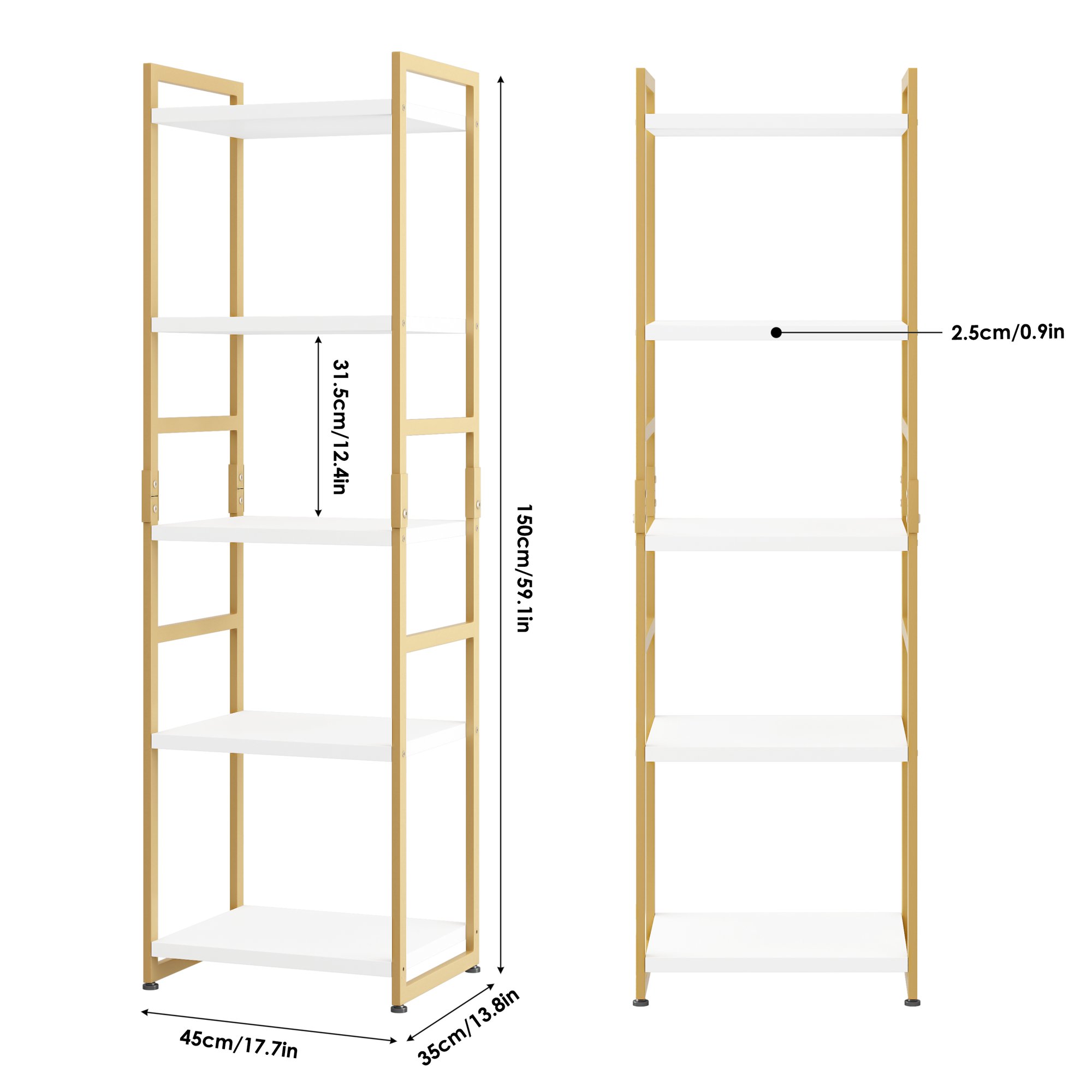 Homfa 5 Tier Gold and White Bookshelf. Tall Freestanding Storage Shelf with Metal Frame for Living Room