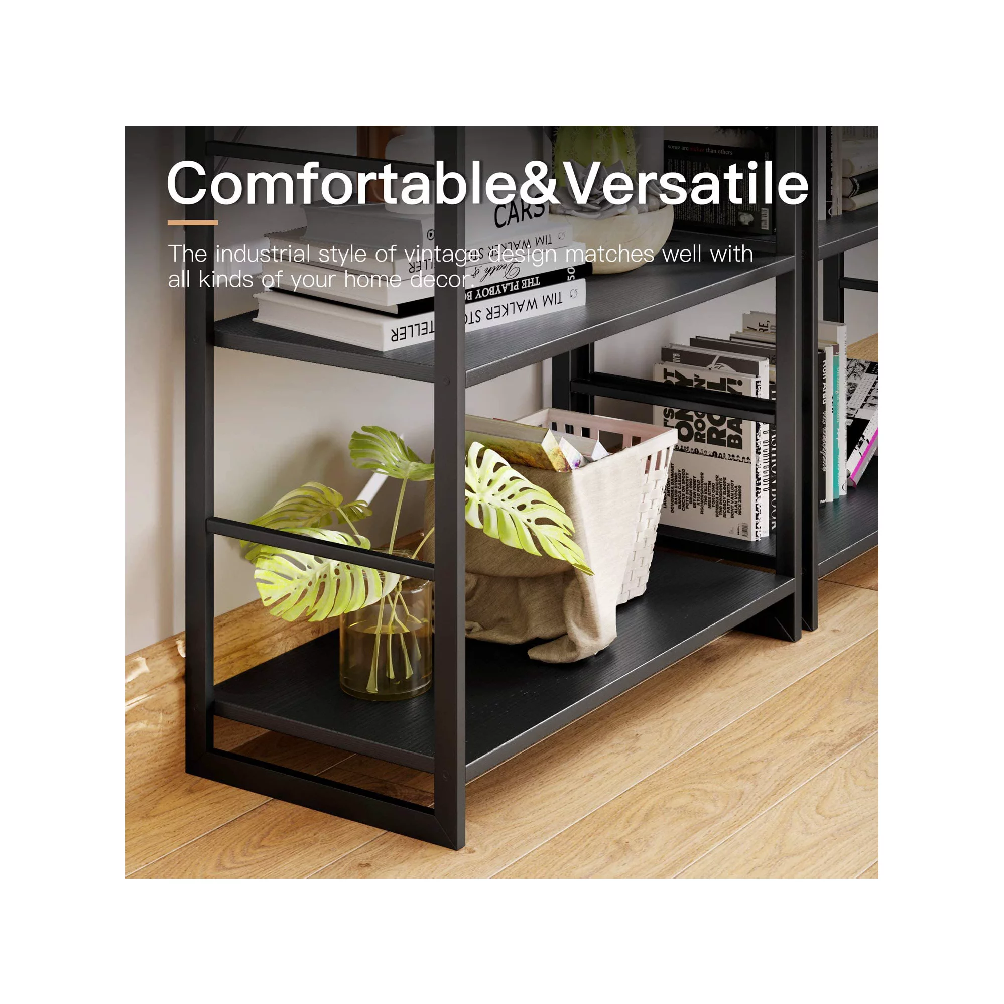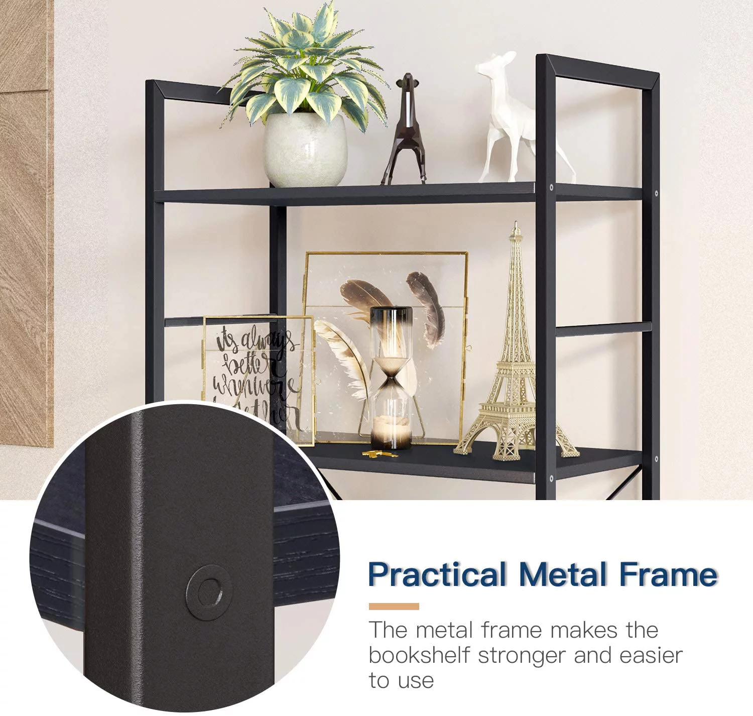 ODK 4-Shelf Ladder Bookshelf. Industrial Bookshelf. Metal frame and Wood Shelves Storage Furniture for Home Office. Black