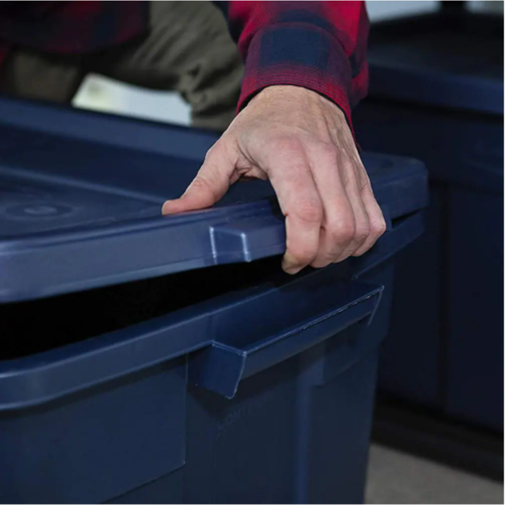Rubbermaid 48 Gallon Black Action Packer Lockable Latch Storage Box Tote. Single