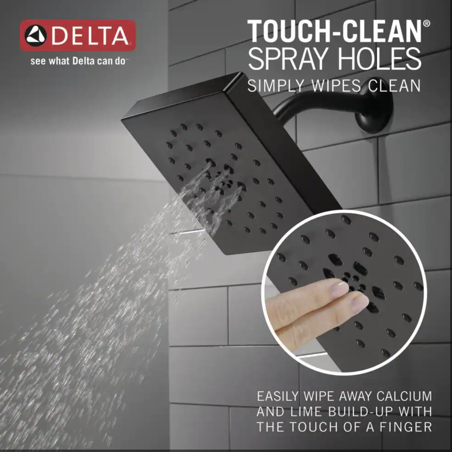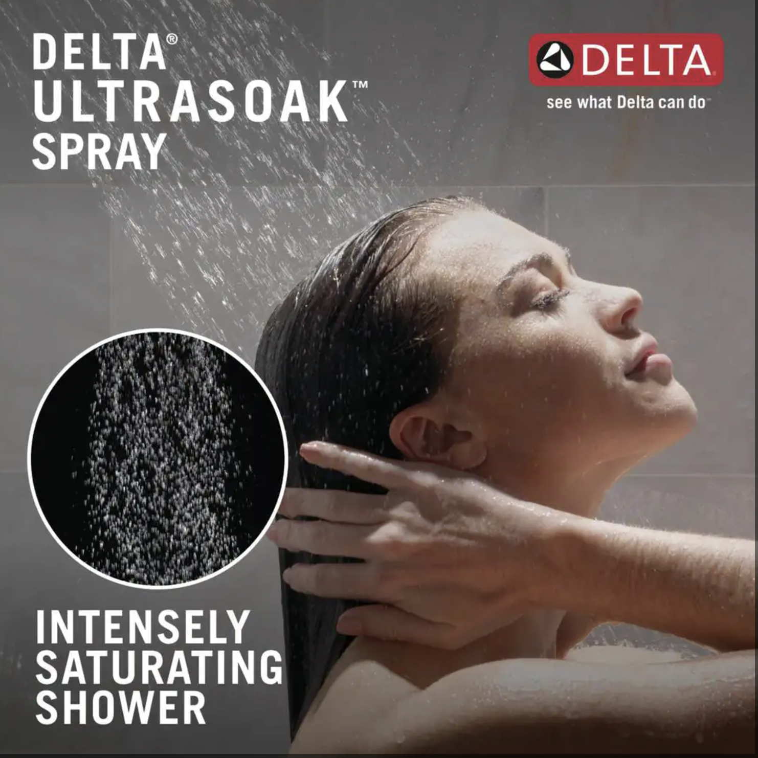 Delta 4-Spray Pattern with 1.75 GPM 7-2/3 in. Wall Mount Fixed Shower Head with H2Okinetic UltraSoak Spray. Matte Black