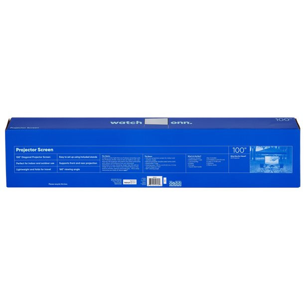 Onn. 100″ Portable Indoor/Outdoor 16:9 Theater Projection Screen. Detachable Legs. White. 100024196