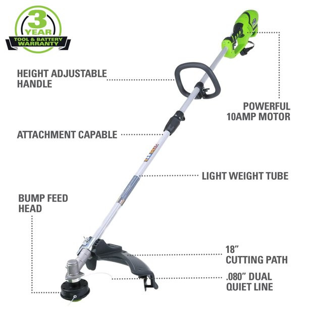 Greenworks 10 Amp. 18-inch Corded Electric Attachment Capable String Trimmer. 21142