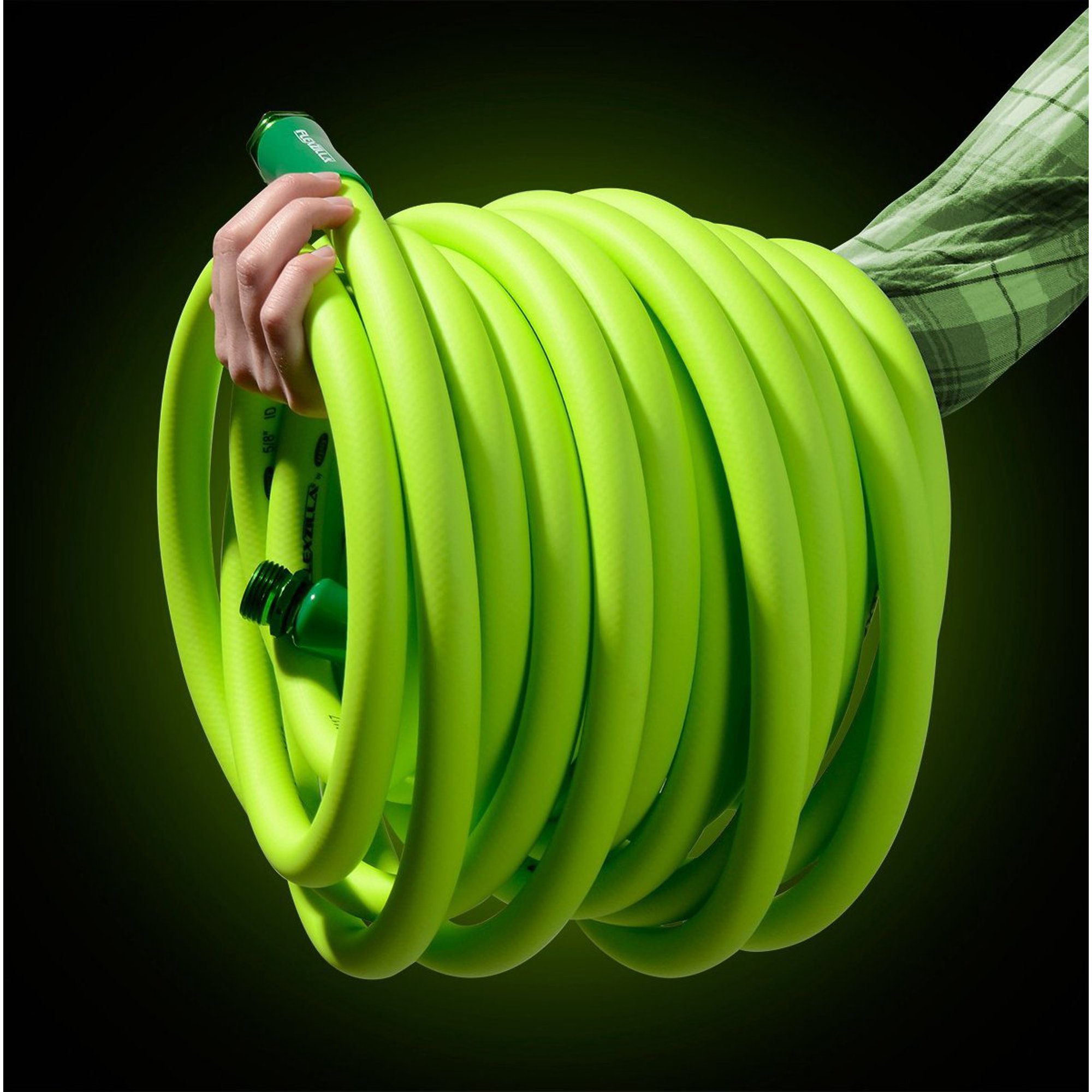 Flexzilla Garden Hose. 5/8″ x 100′. 3/4″ - 11 1/2 GHT Fittings. Flexible Hybrid Polymer. ZillaGreen