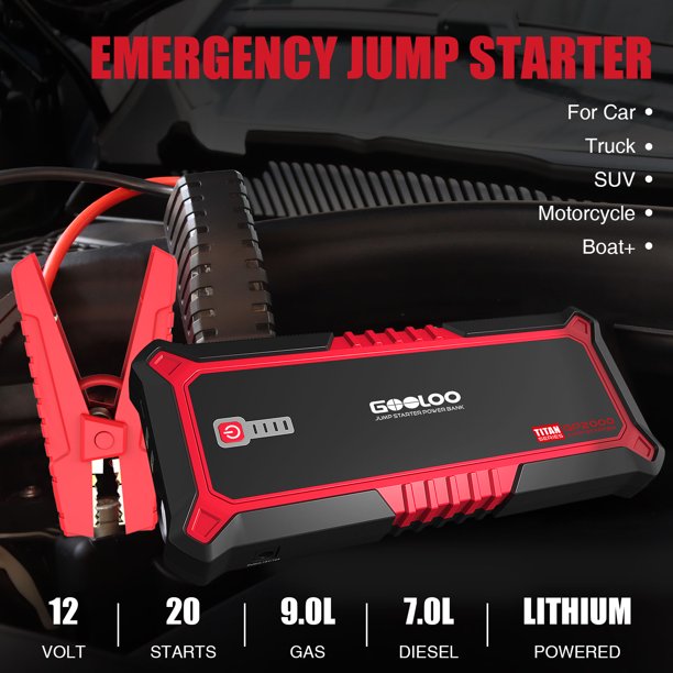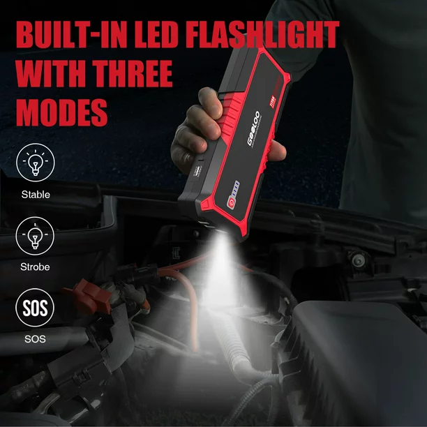 Gooloo GP2000 2000A Peak Jump Starter Car Battery Charger Supersafe Auto Jumper Box. Red