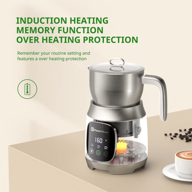 Maestri House Detachable Milk Frother With Smart Touch Control. Variable Temp And Froth Thickness - Moonlight White