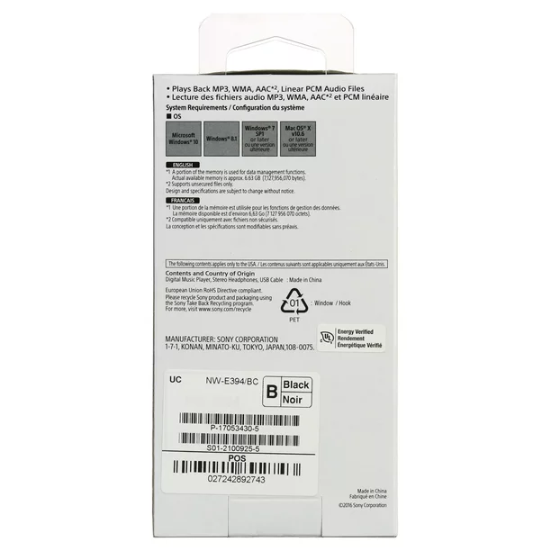 Sony Walkman Audio 8GB NW-E394/B Black
