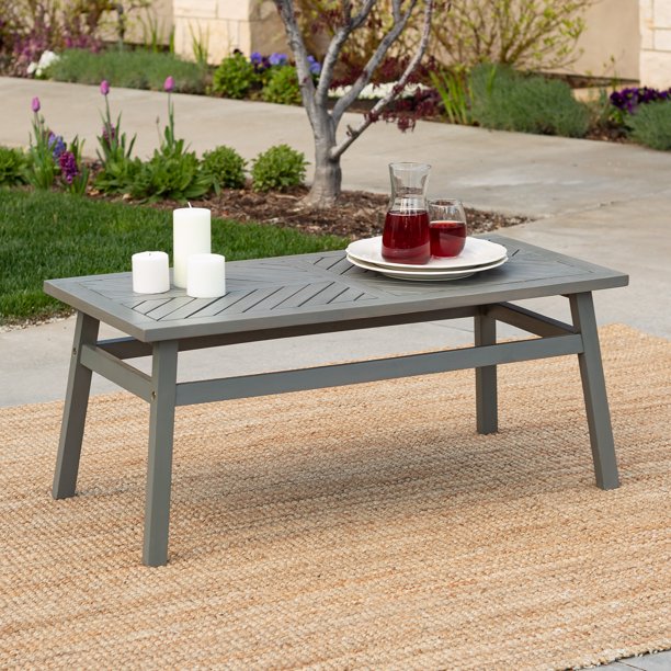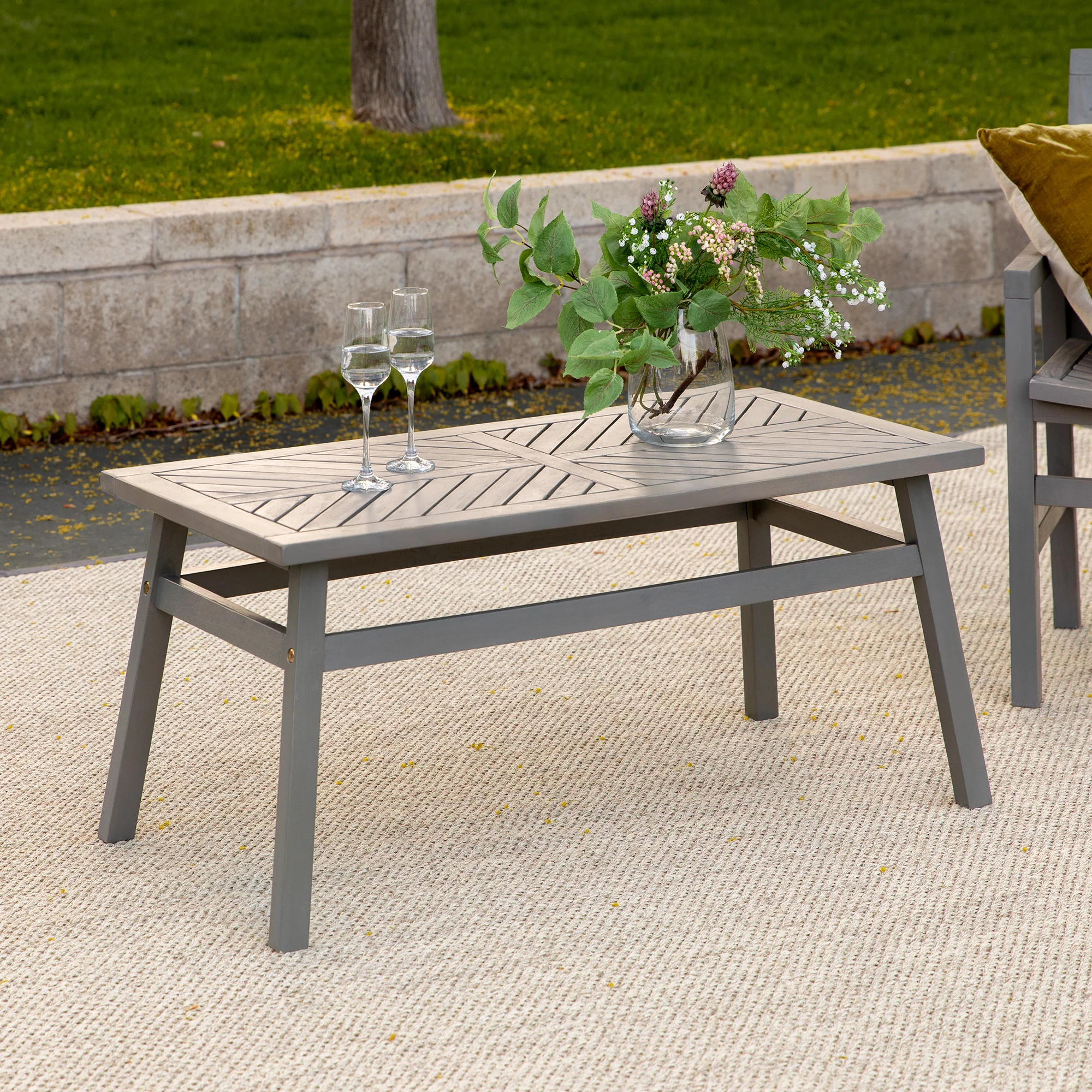 Manor Park Wood Outdoor Coffee Table With Chevron Design. Grey Wash