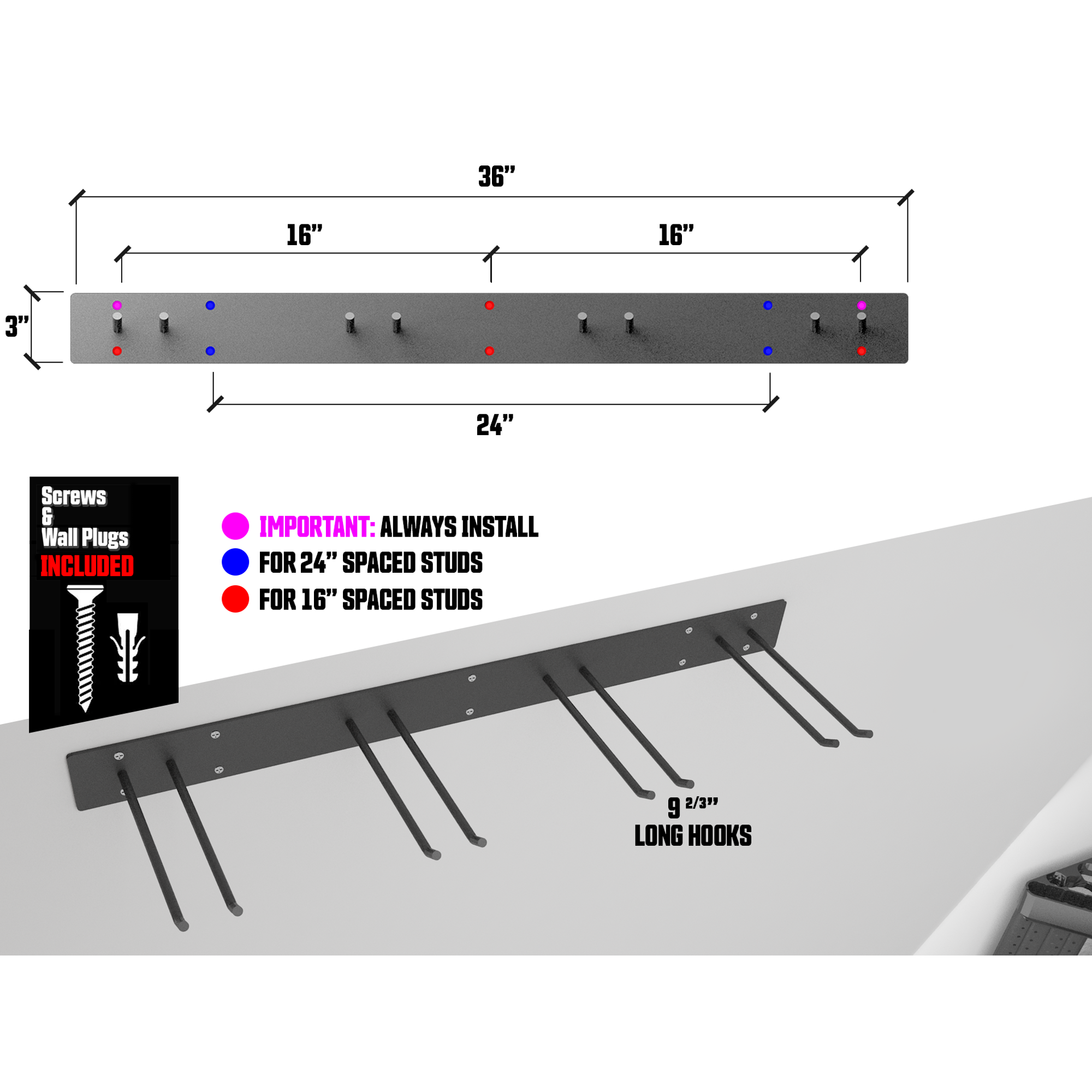 PeerBasics Solid Metal 36″ Wall Mount Shelf Hook Rack. 380 lbs Capacity. Black