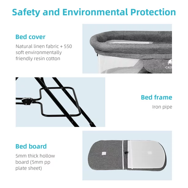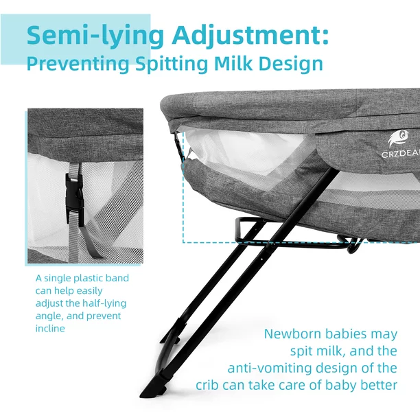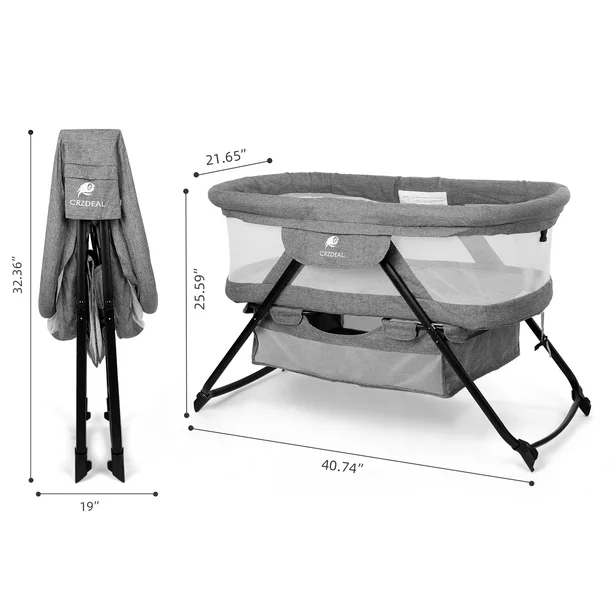 Crzdeal Bassinet 2-in-1 Fold Bassinet for Baby Stationary & Rock Portable Beside Sleeper for Baby. Gray
