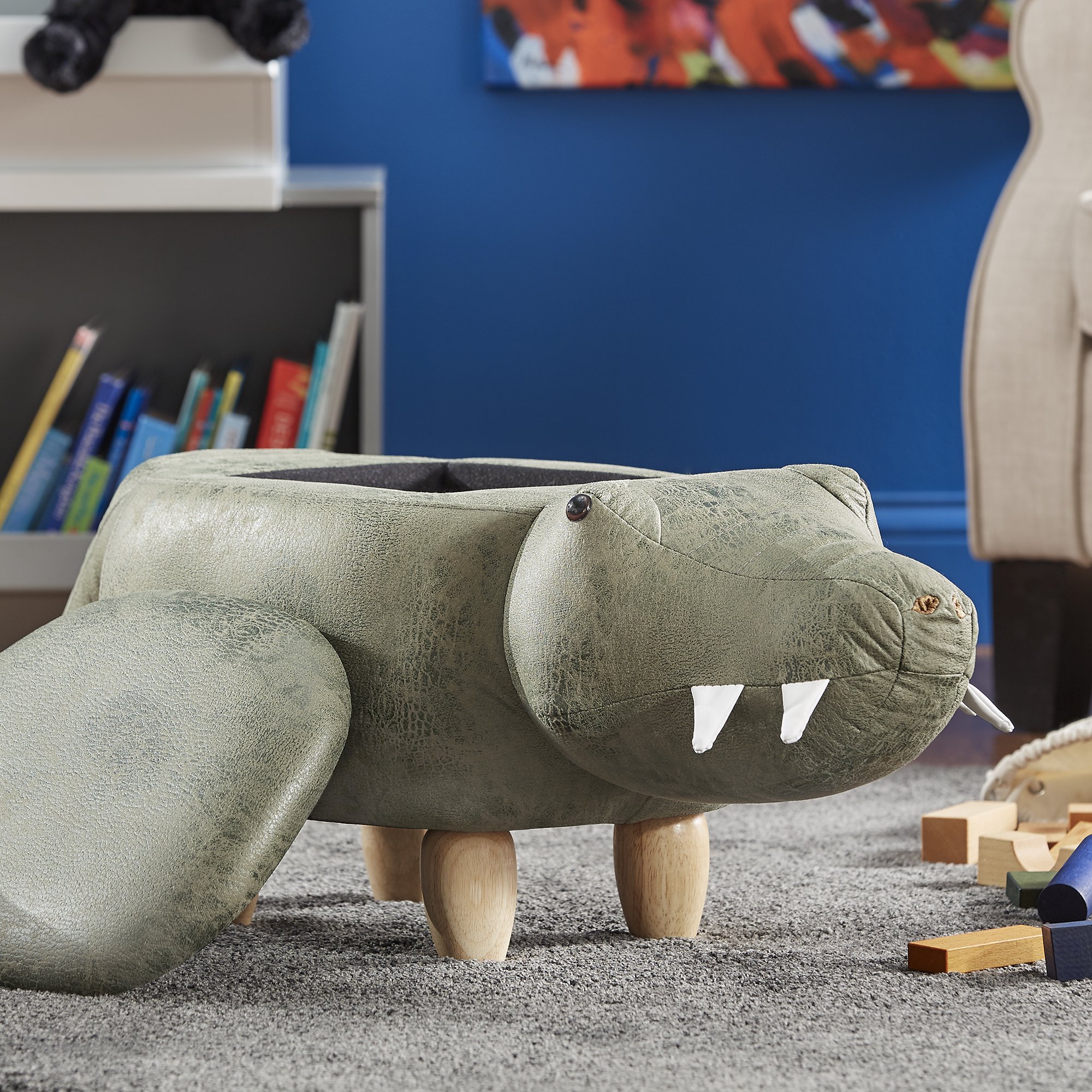 Weston Home Nieuwe Animal Storage Ottoman. Green Alligator