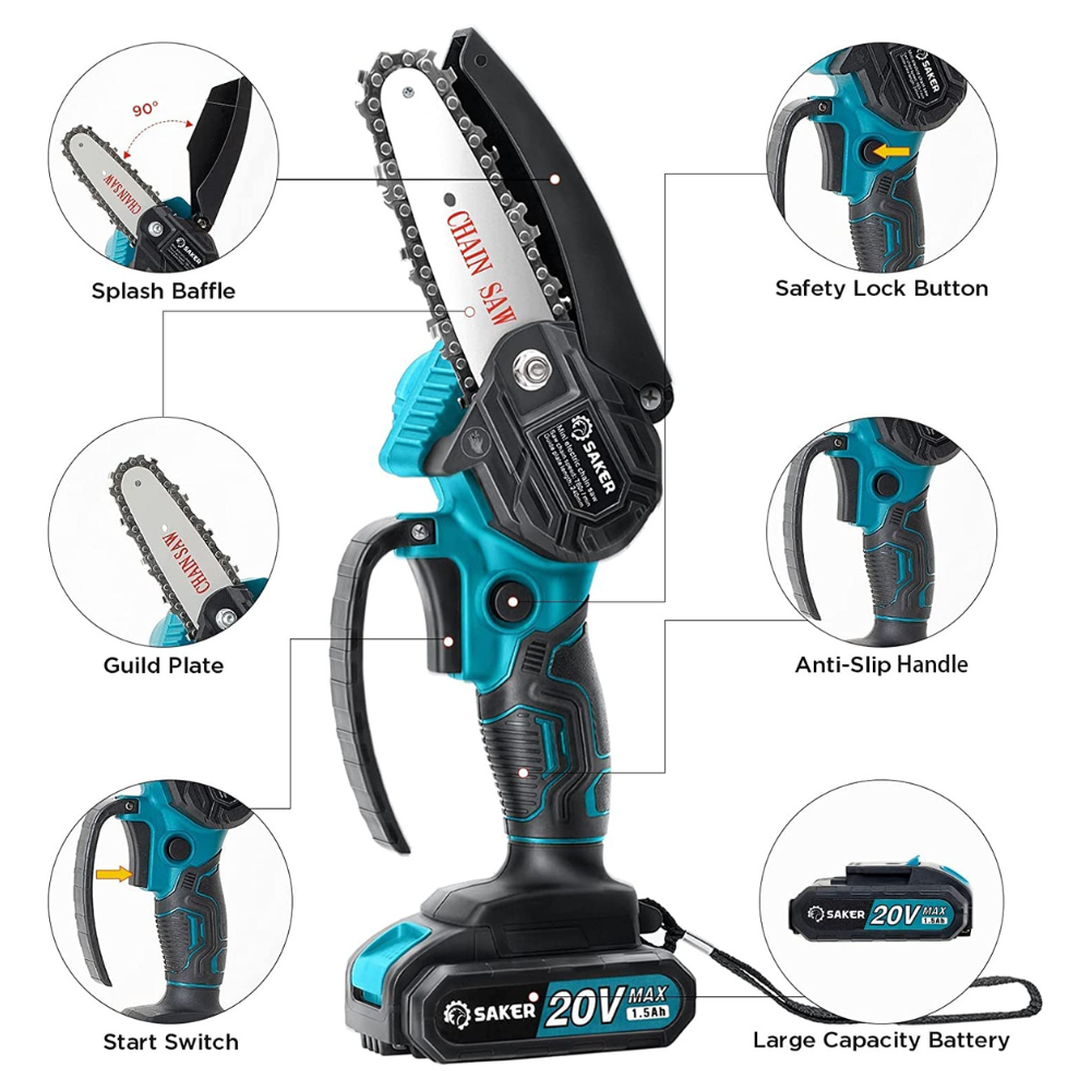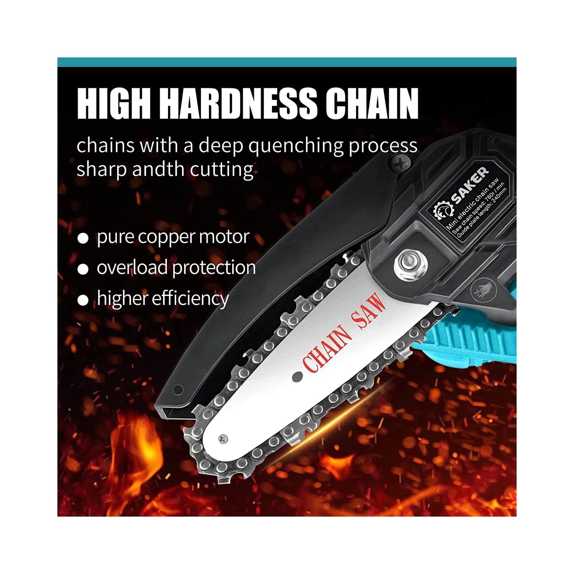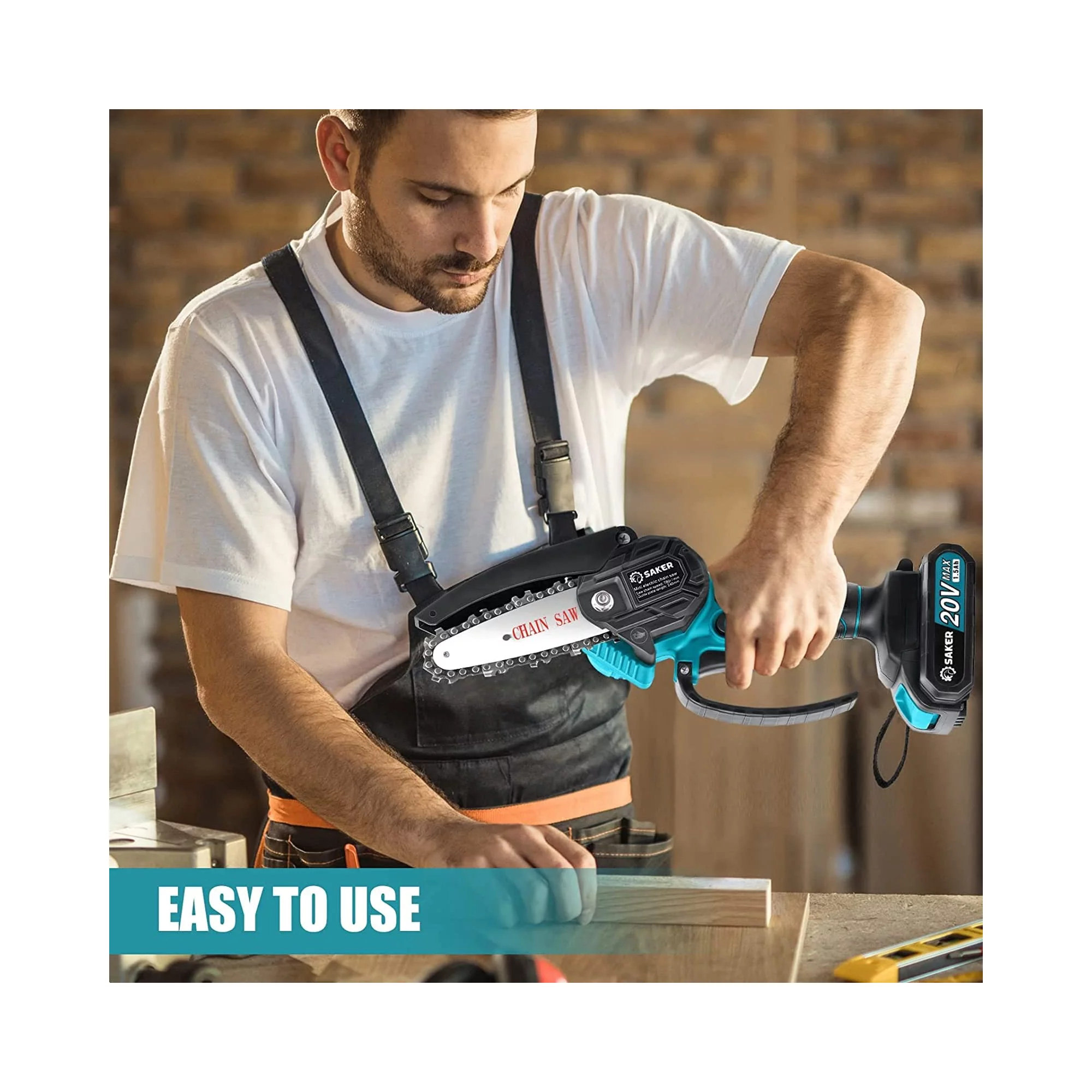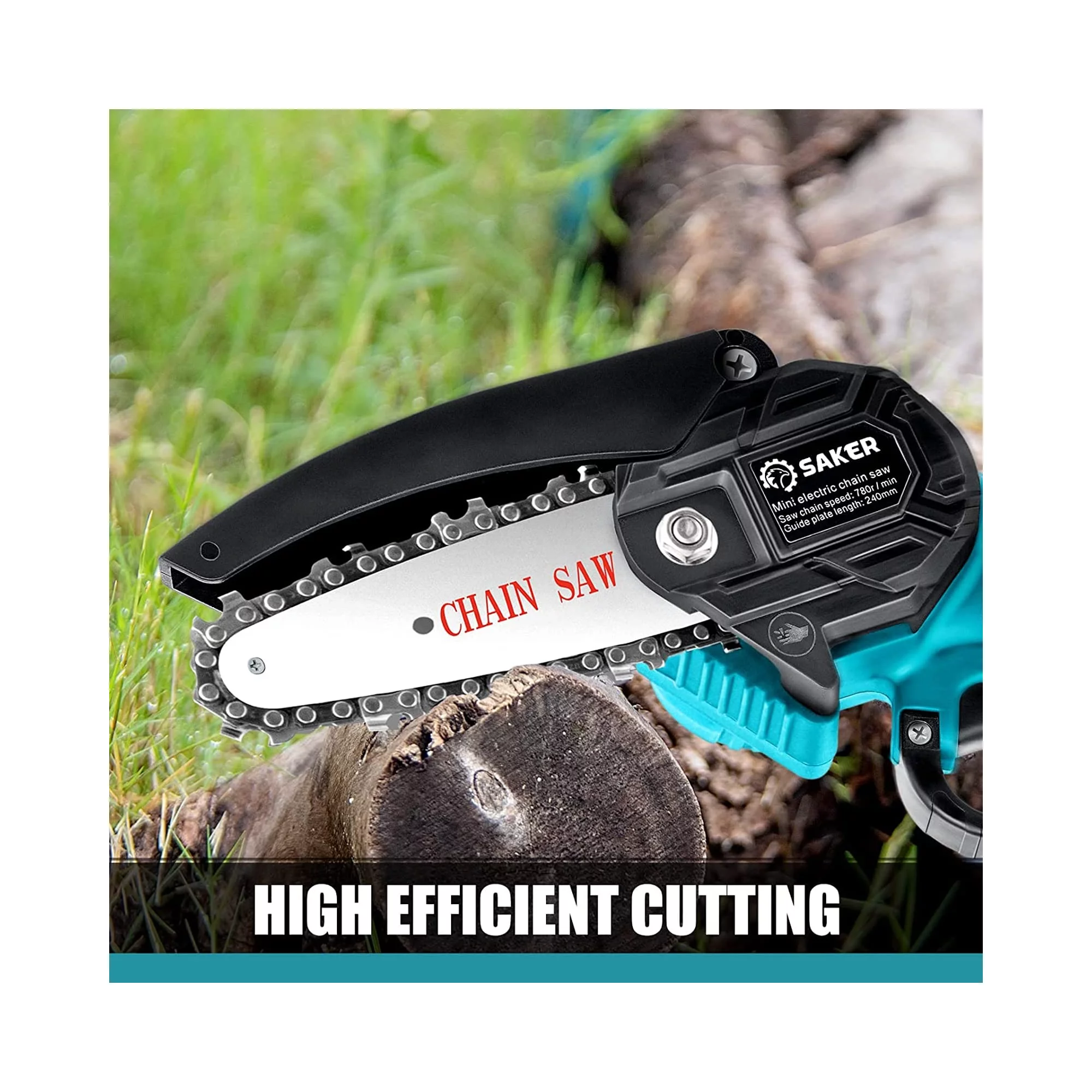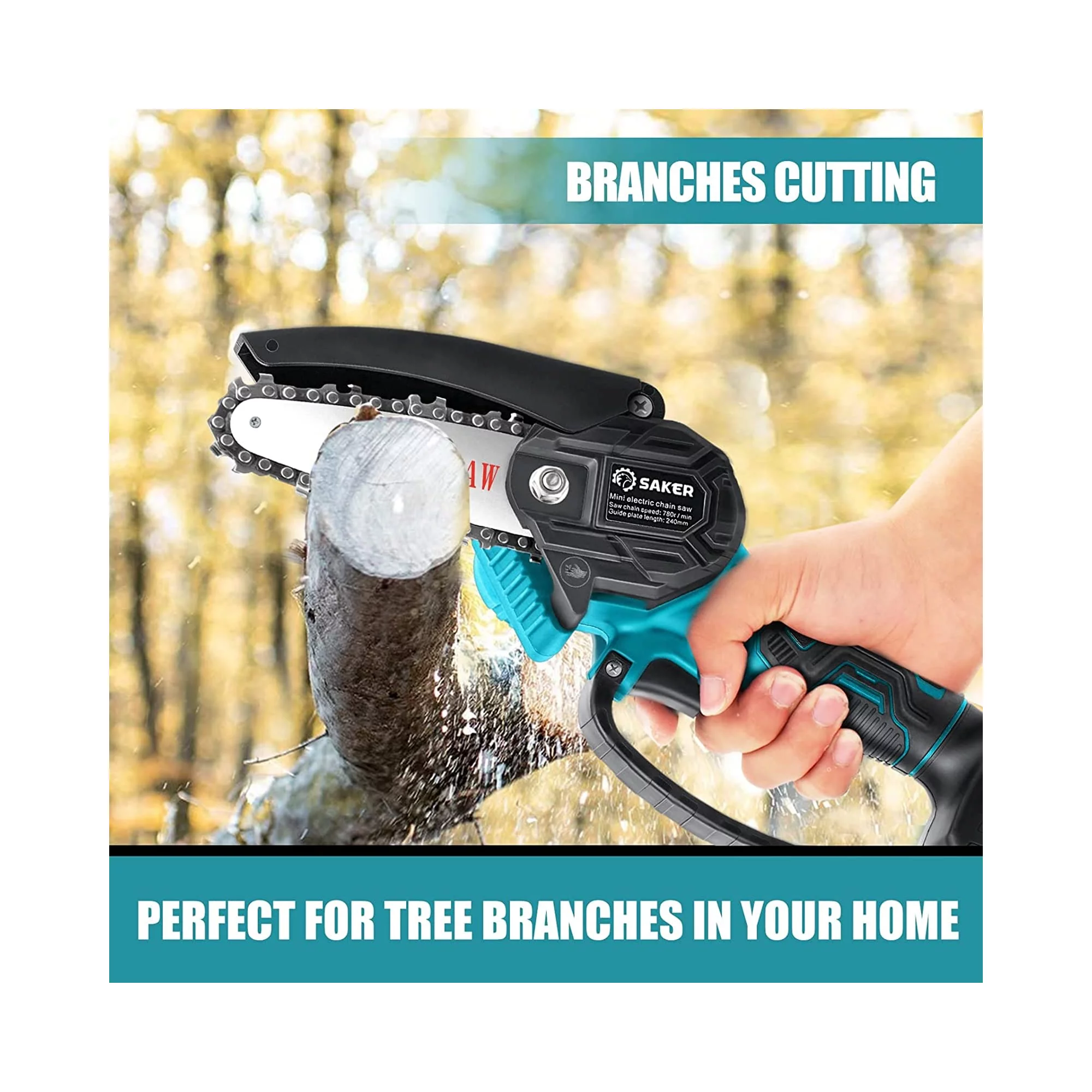 Saker 4-Inch Portable Electric Chainsaw. Cordless (Mini Chainsaw + 1 Battery)