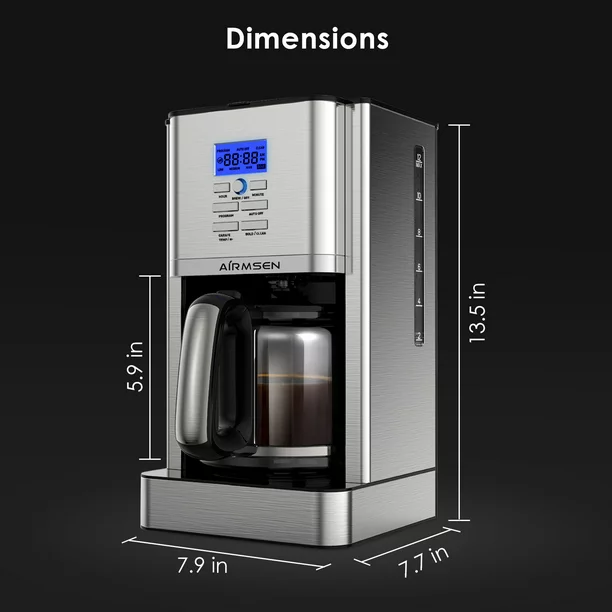 Airmsen Stainless Steel 12 Cup Drip Coffee Maker Self-Cleaning
