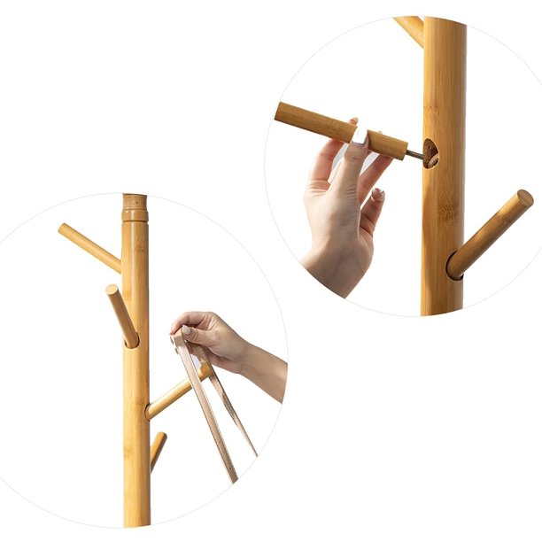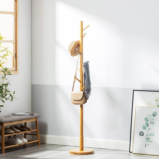 Maydear Bamboo Coat Rack. Floor Standing Wooden Coat Rack Tree with Solid Round Base. Freestanding Coat Rack