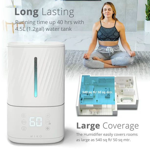 Miko Humidifiers for Bedroom. Ultrasonic Cool And Warm Mist Vaporizer