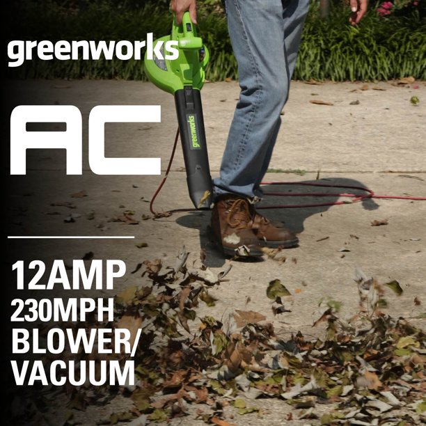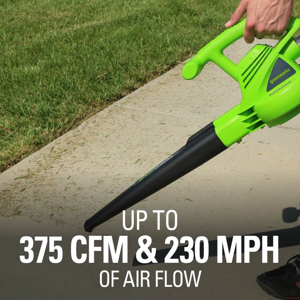 Greenworks 12 Amp 375 CFM Corded Electric Leaf Blower/Mulcher/Vacuum. 24022