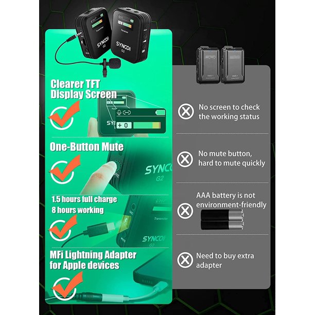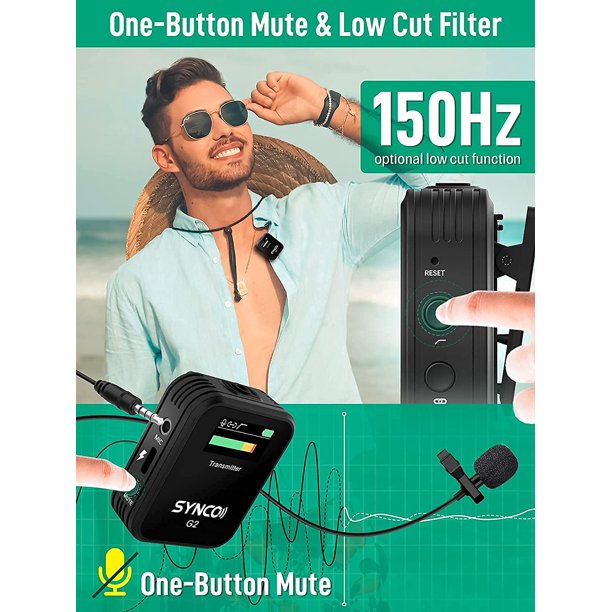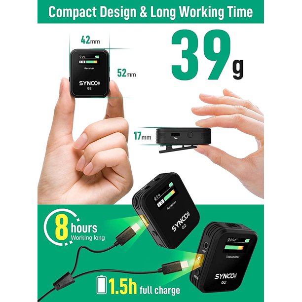 Synco G2(A1) 2.4G Wireless Lavalier Microphone System 3.5mm Cable for DSLR Camera Camcorder Smartphone