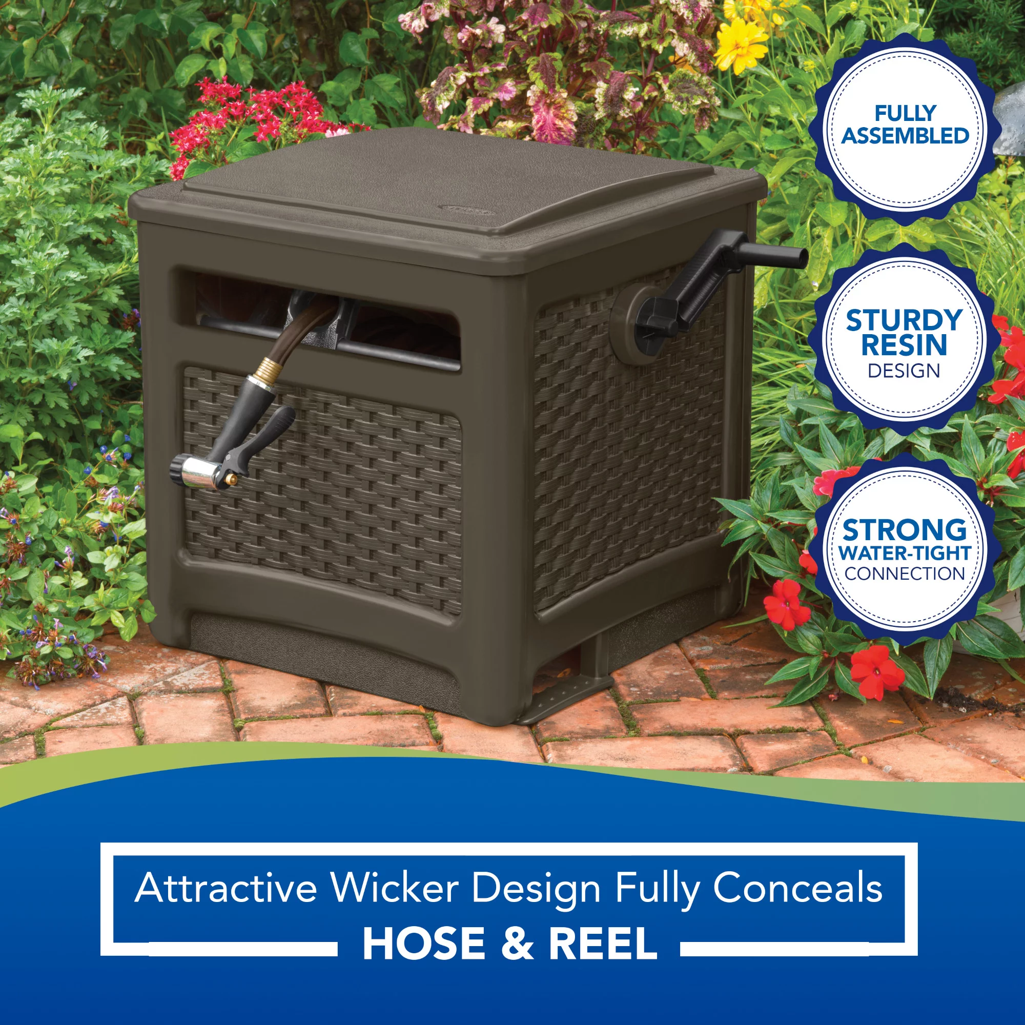 Suncast 225 ft. Smart Trak Wicker Garden Hose Reel Guide and Hideaway. Java Brown