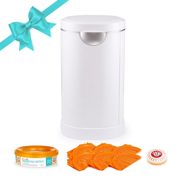 Munchkin Diaper Pail Starter Set. Powered By Arm And Hammer. White