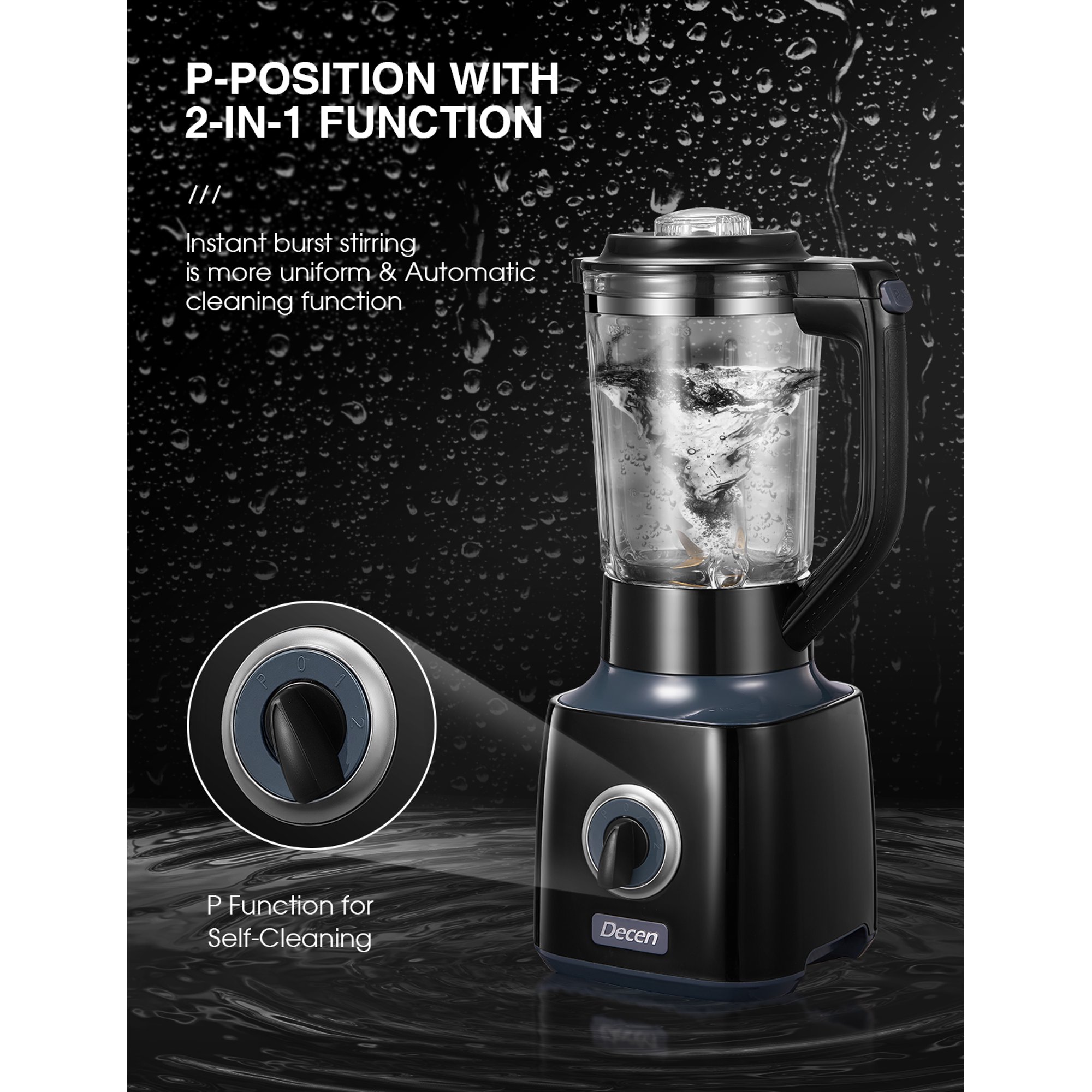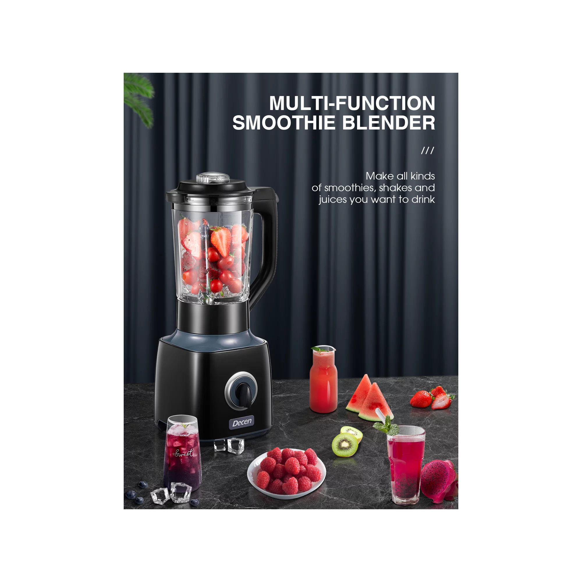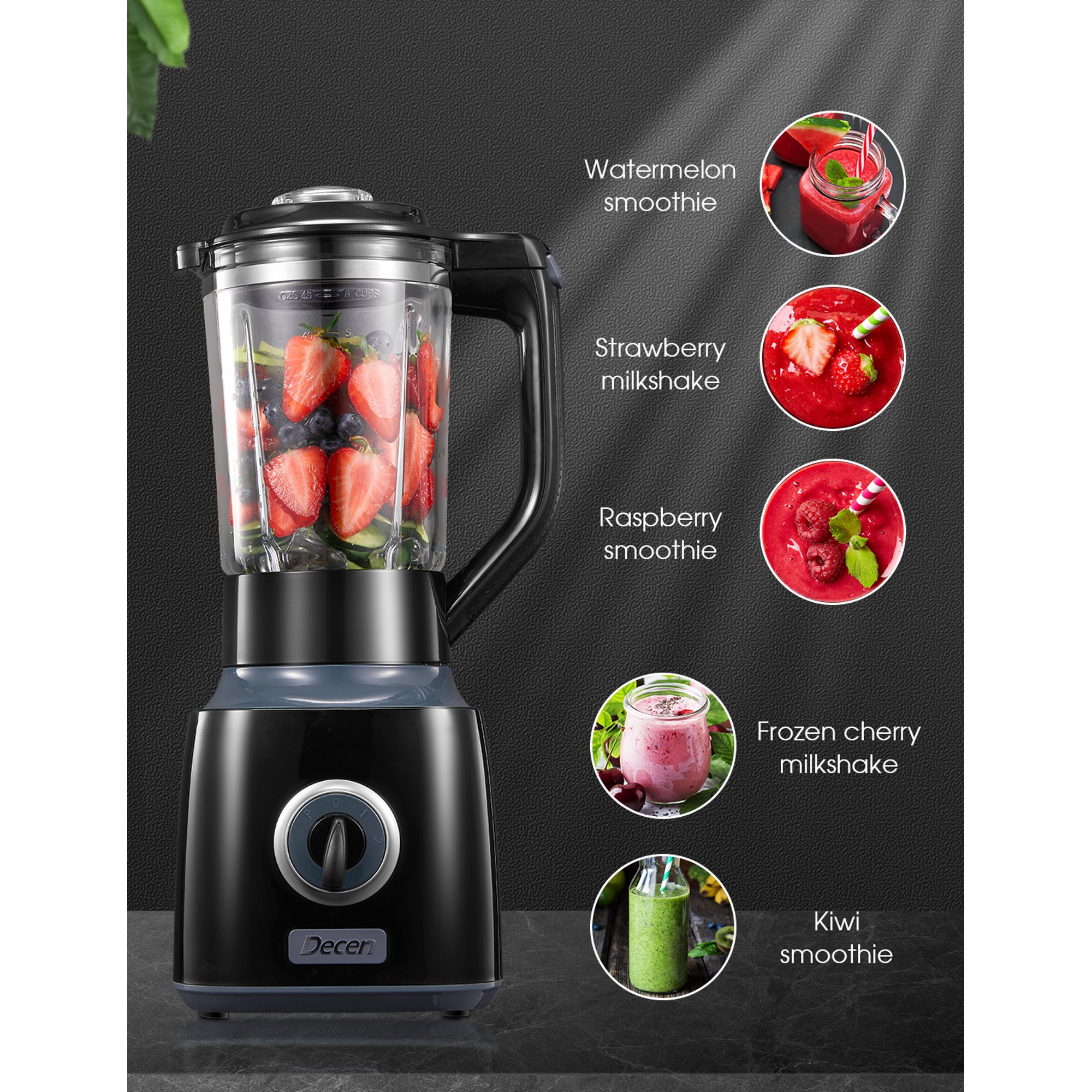 Decen 700W Professional Blender with 6 Cup Glass Jar. Smoothie Maker Blender. Black