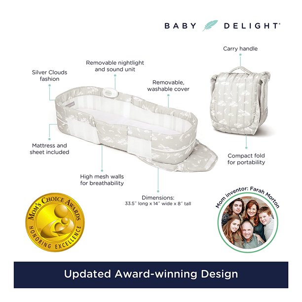 Baby Delight Snuggle Nest Harmony Infant Portable Lounger. BD03050. Silver Clouds