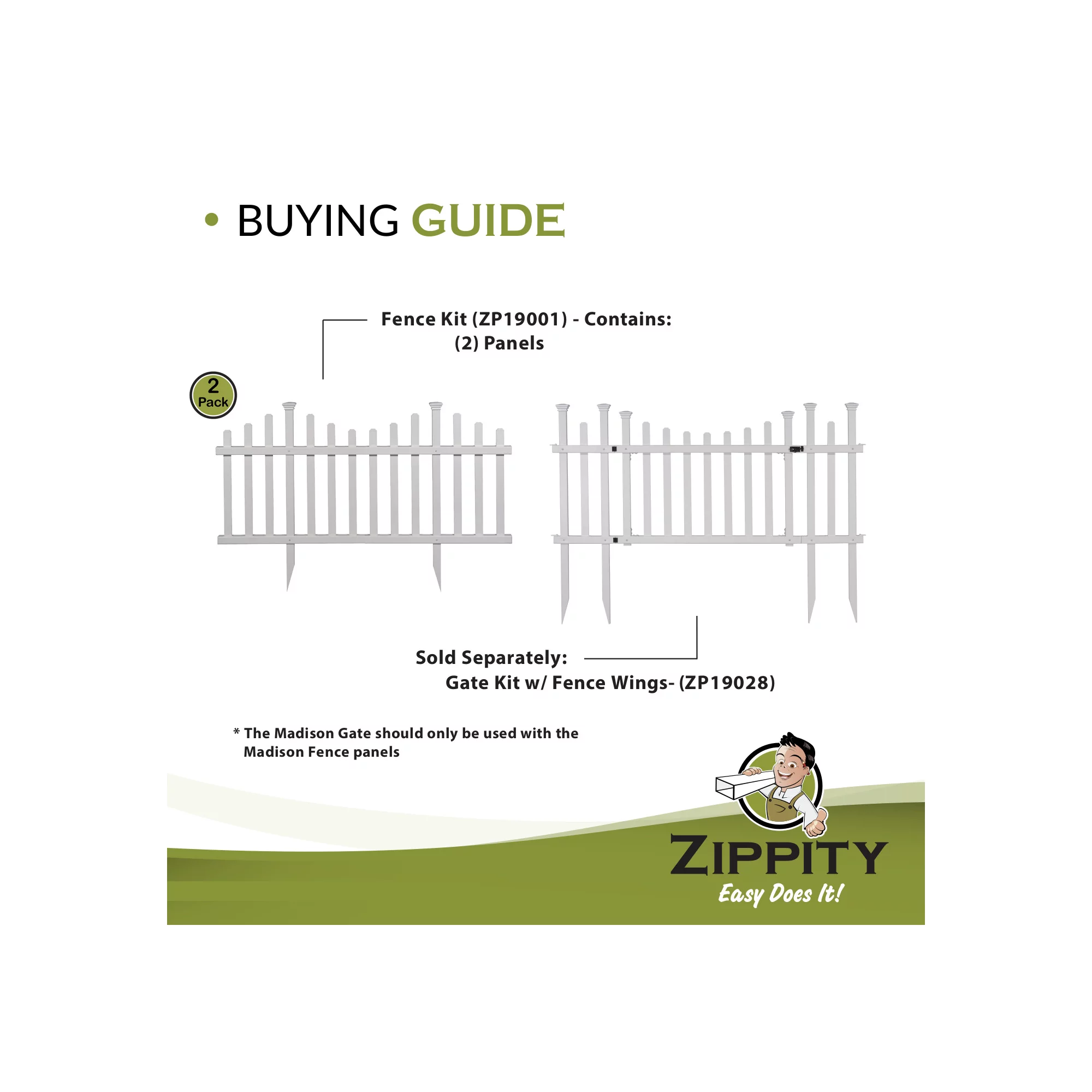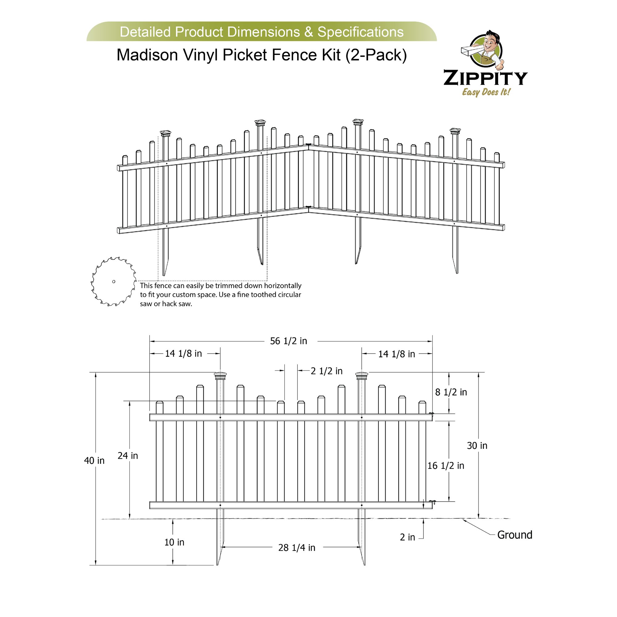 Zippity Outdoor Products Madison No-Dig Vinyl Fence Kit (30in x 56in) (2 Pack)