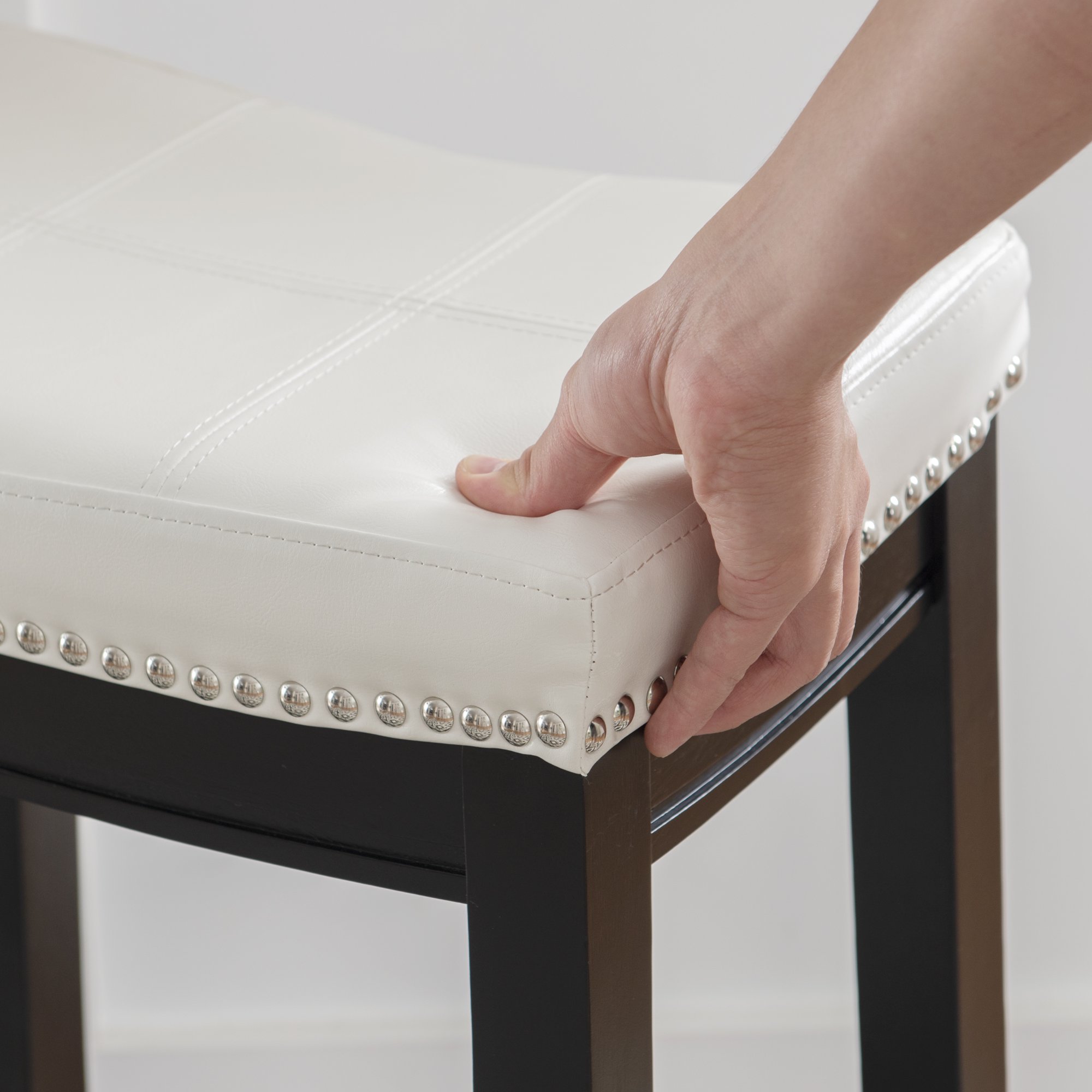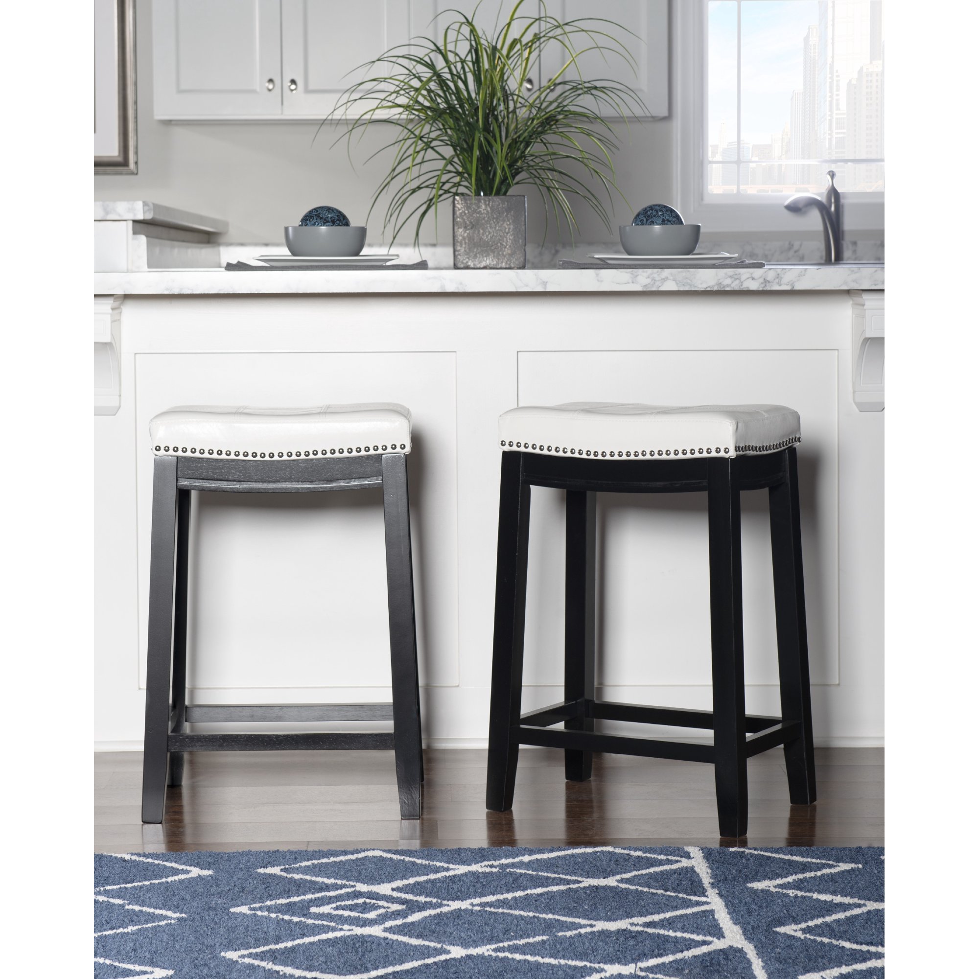 Linon Cessford 26″ Backless Bar Stool. Black Finish with White Faux Leather