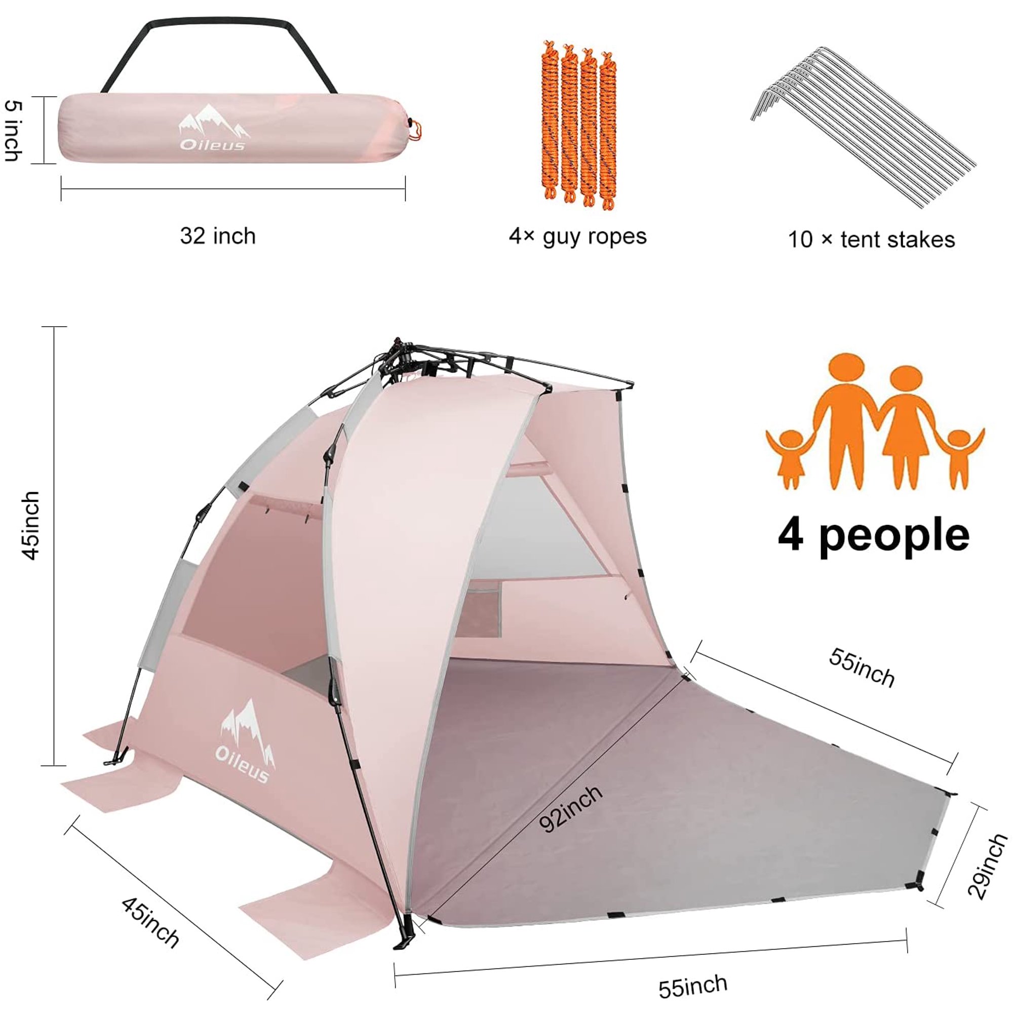 Oileus Beach Tent X-Large 4 Person Tent Sun Shelter. Portable Sun Shade. Pop Up Tents for Beach
