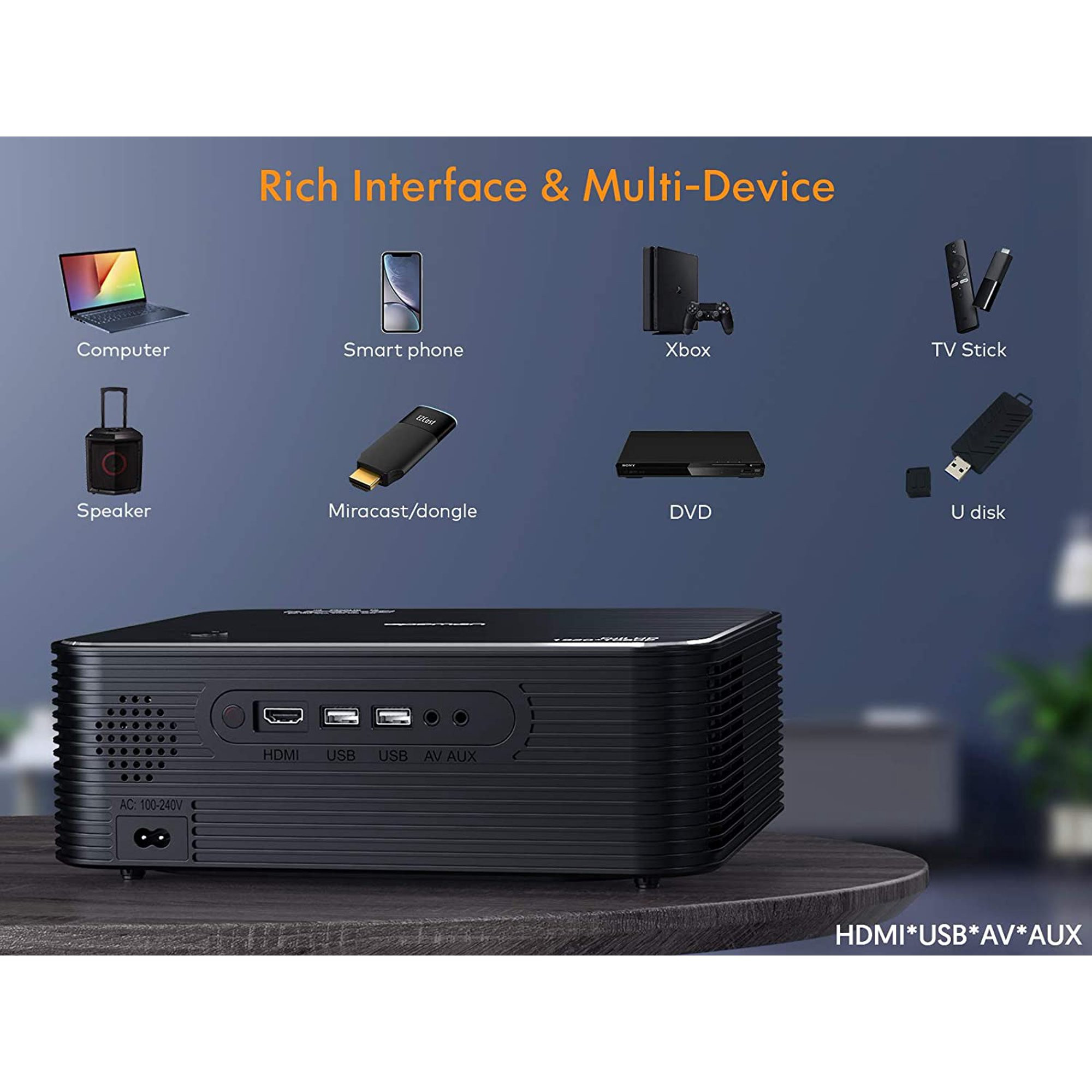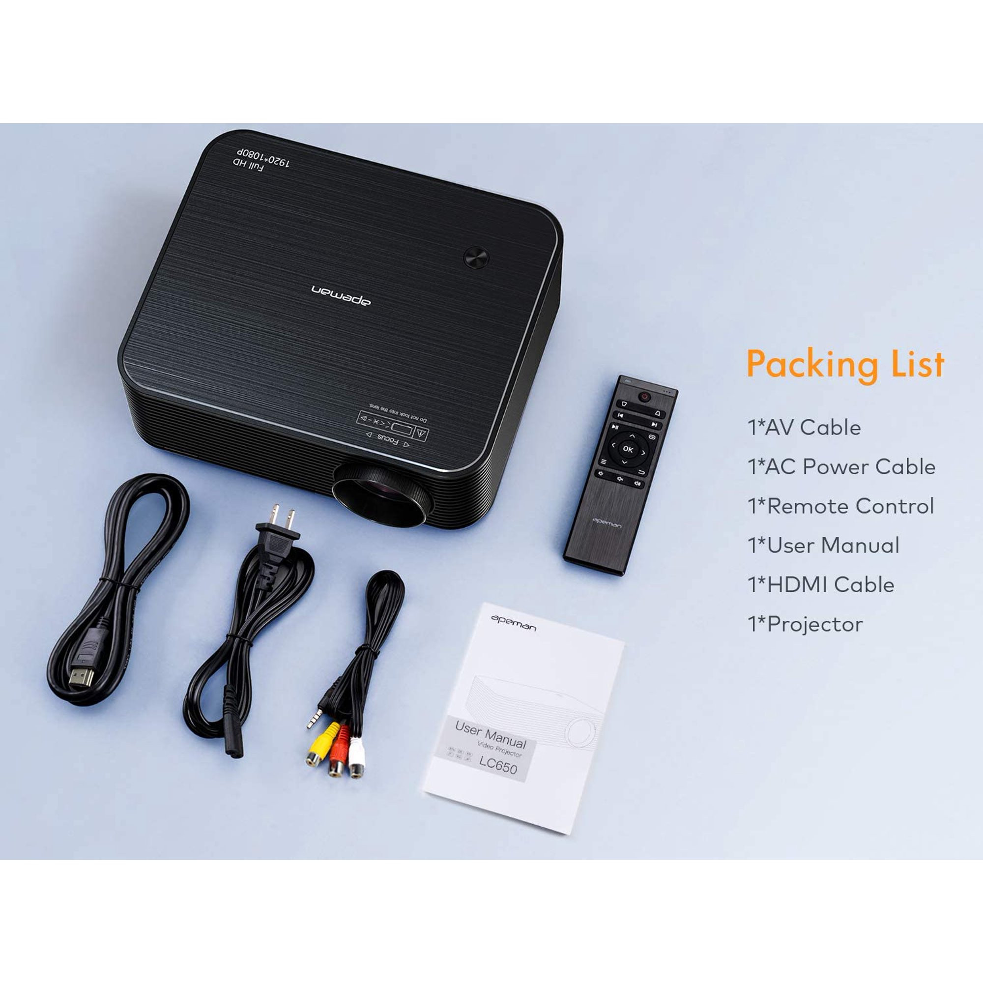 Apeman LC650 Native 1080P Projector. Support 4K. 300″ Screen. 4D Electronic Keystone. 75% Zoom