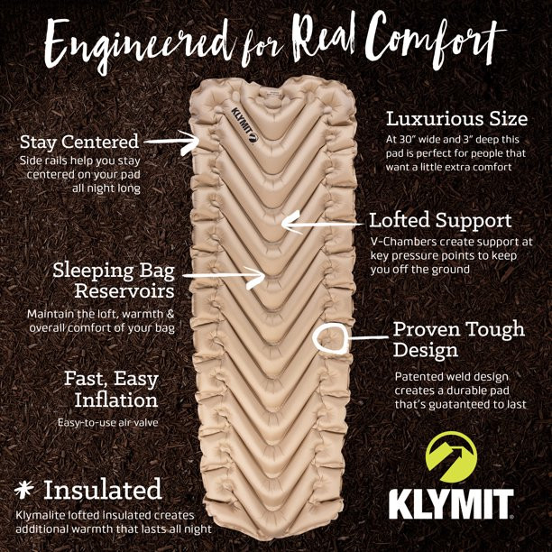 Klymit-s Insulated Static V Luxe SL Outdoor Camping Sleeping Pad. 78×27 inches. Recon Beige