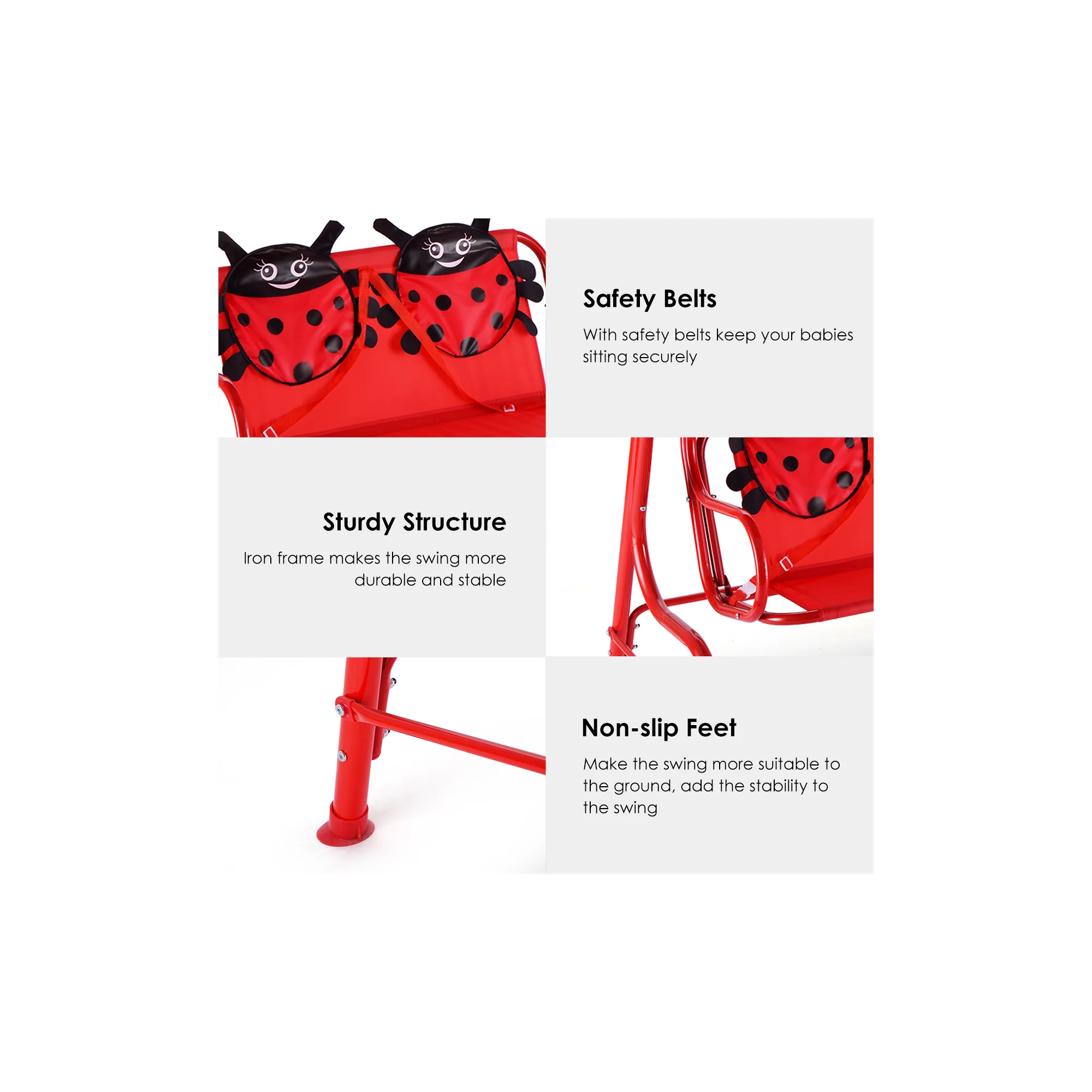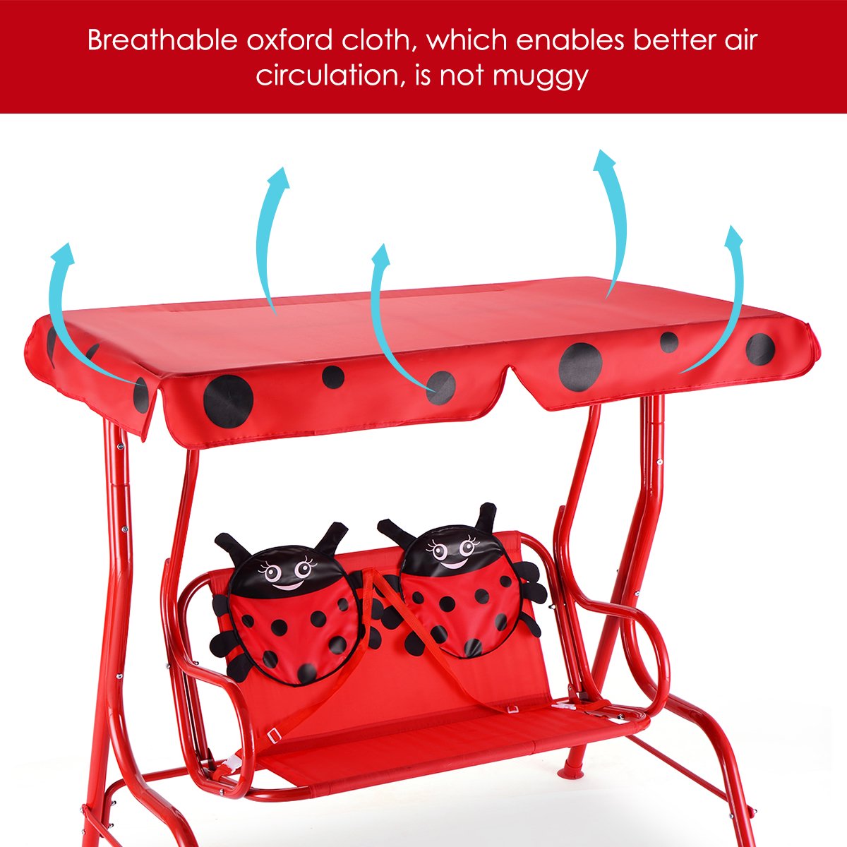 Costway Kids Patio Swing Chair Children Porch Bench Canopy 2 Person. Red