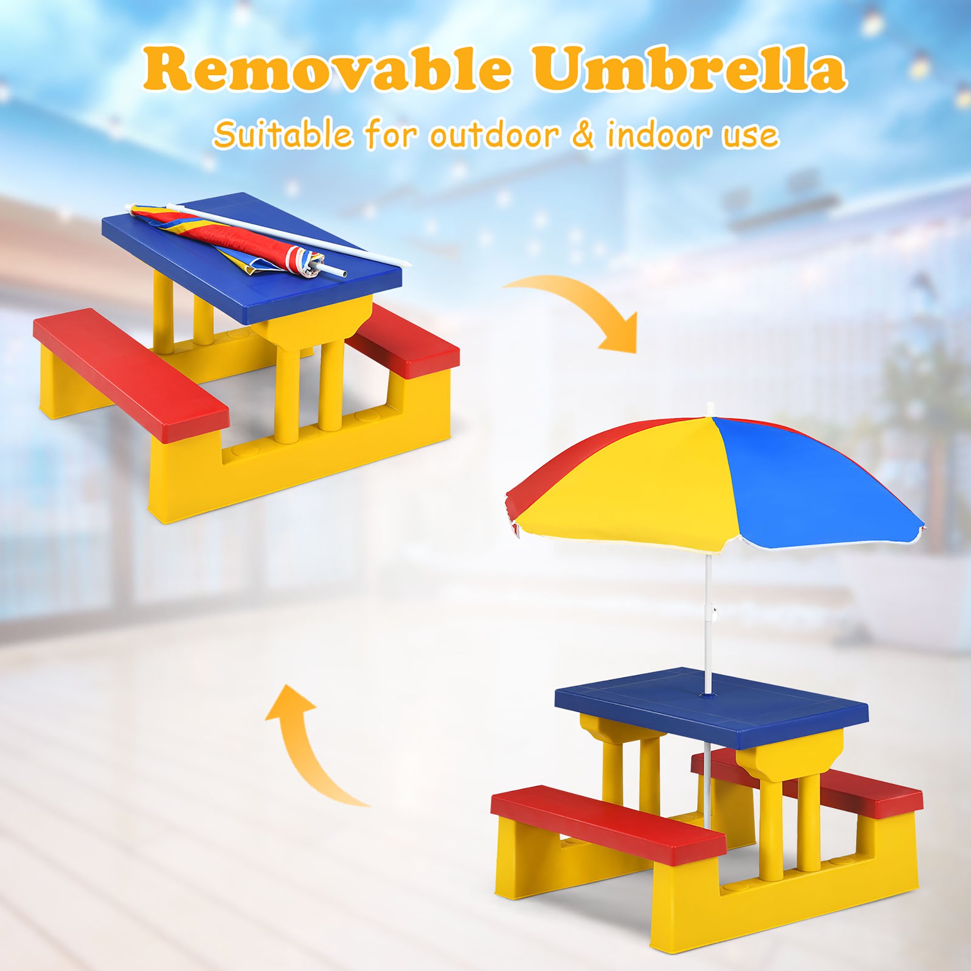 Costway Picnic Table Set with Removable Umbrella Indoor Outdoor Garden Patio