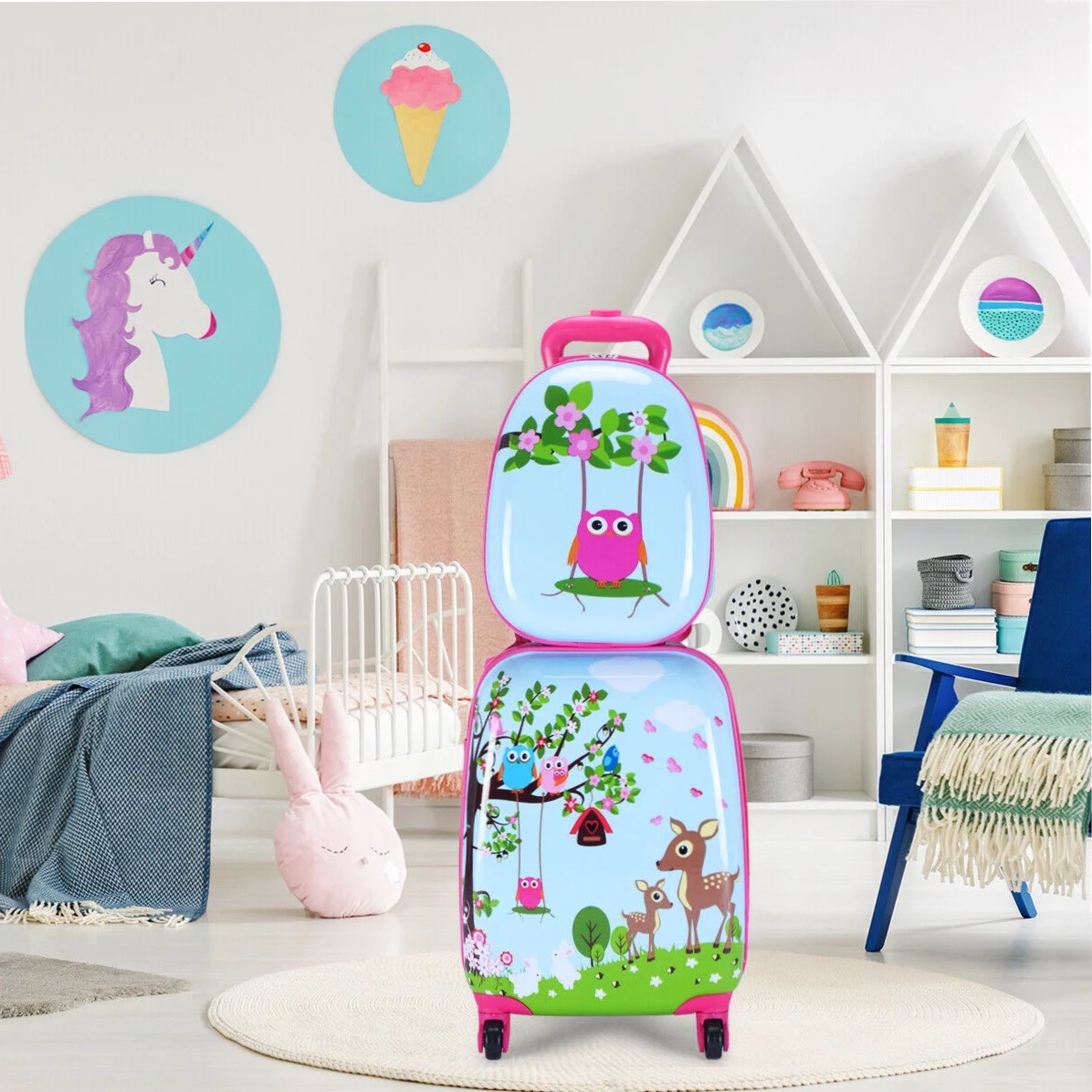 Costway 2Pc 12” 16” Kids Luggage Set Suitcase Backpack School Travel Trolley. Light Blue