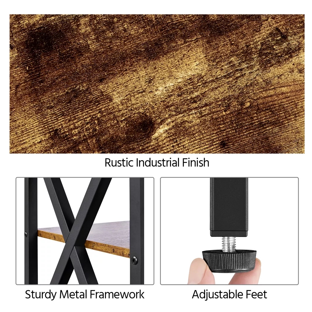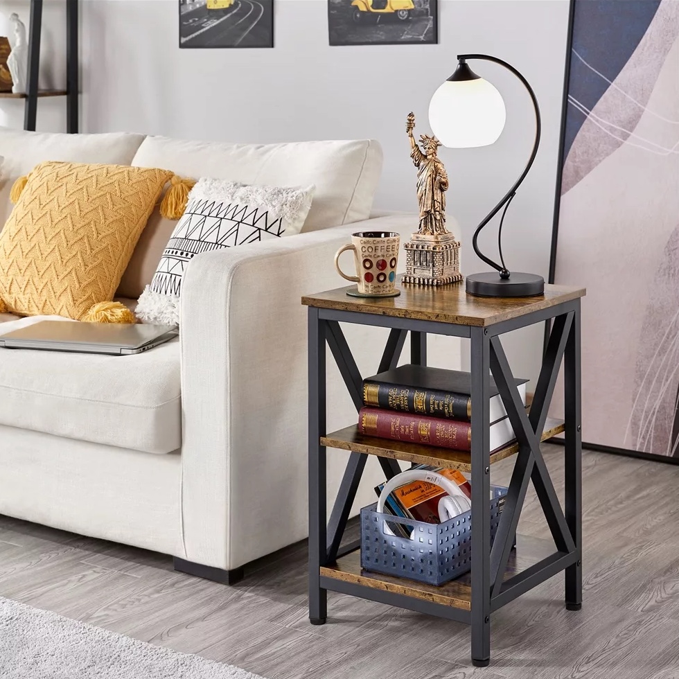 River Street Designs Industrial 3-Tier Wood and Metal End Table. Rustic Brown
