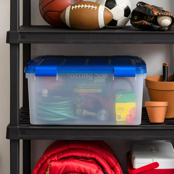 Iris USA. 60 Quart WeatherPro Gasket Clear Plastic Storage Box with Lid. Blue. Set of 4