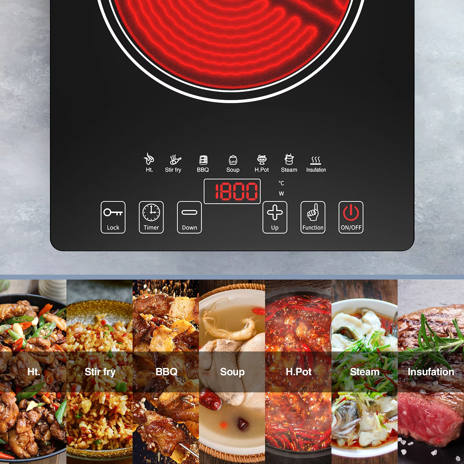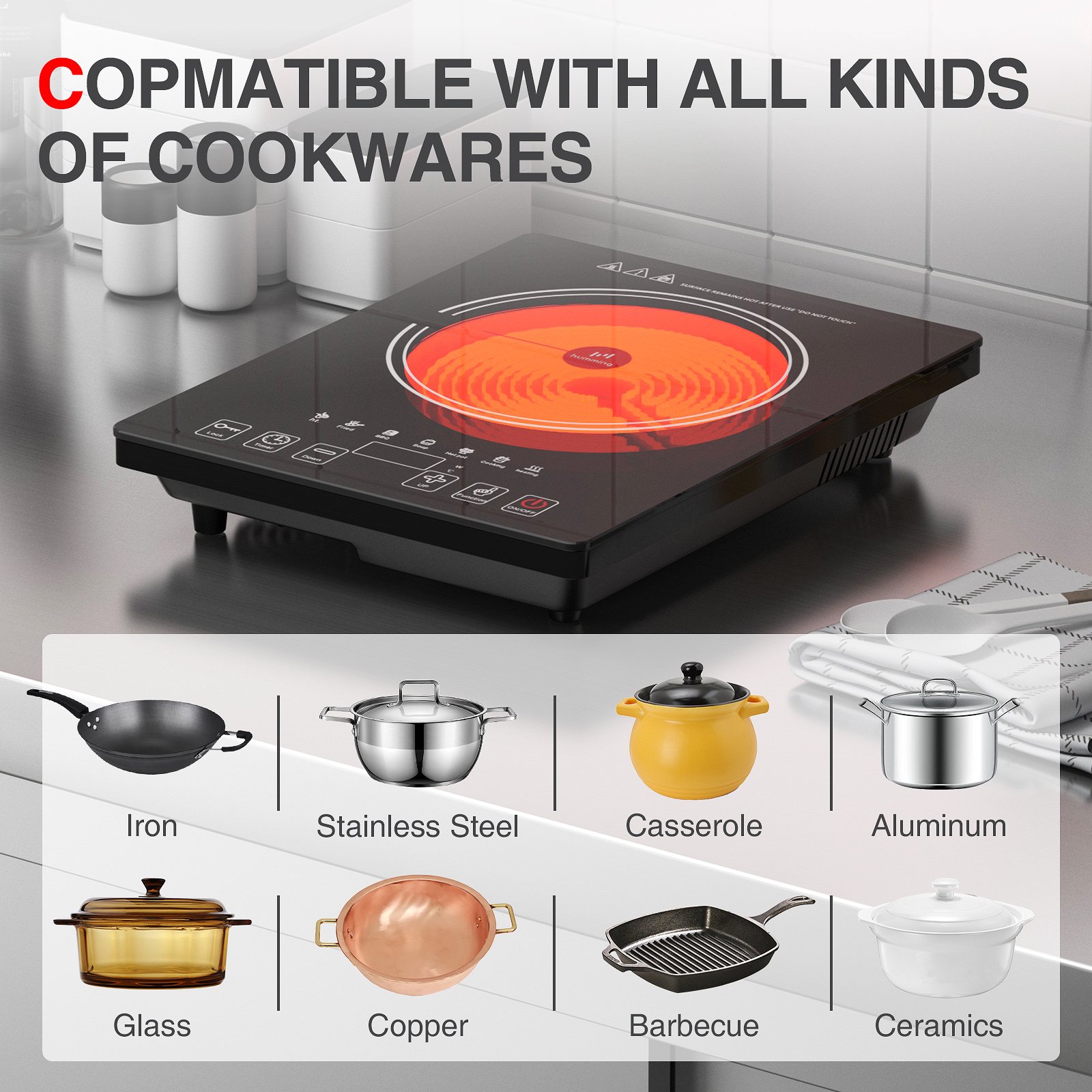 QTYANCY Electric Cooktop. Portable Induction Cooktop 1800W with LED Sensor Touch Screen
