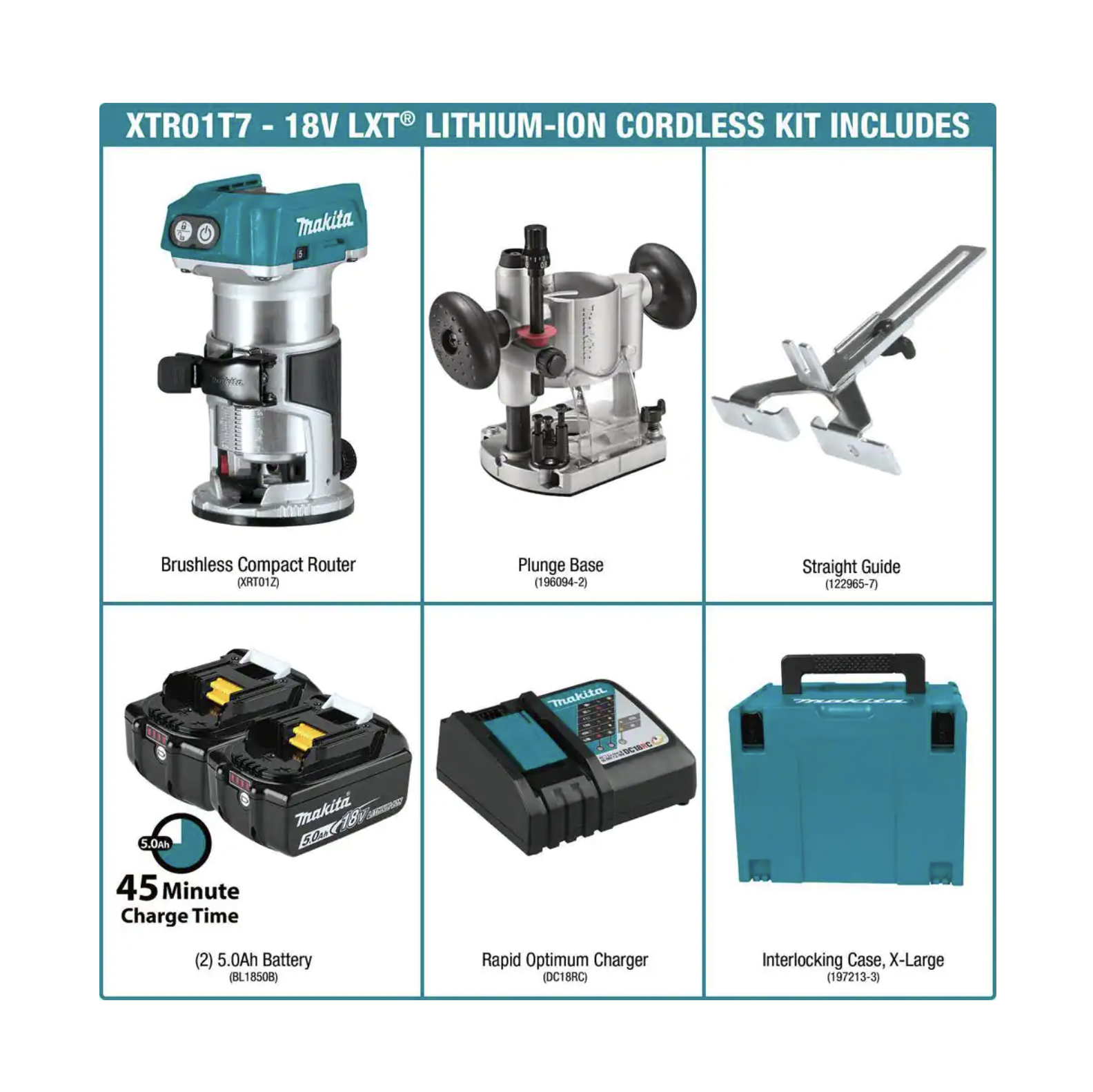 Makita 5.0 Ah 18V LXT Lithium-Ion Brushless Cordless Compact Router Kit