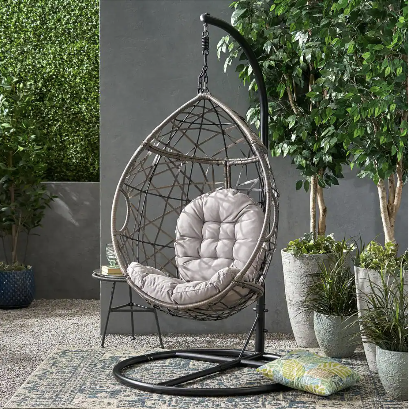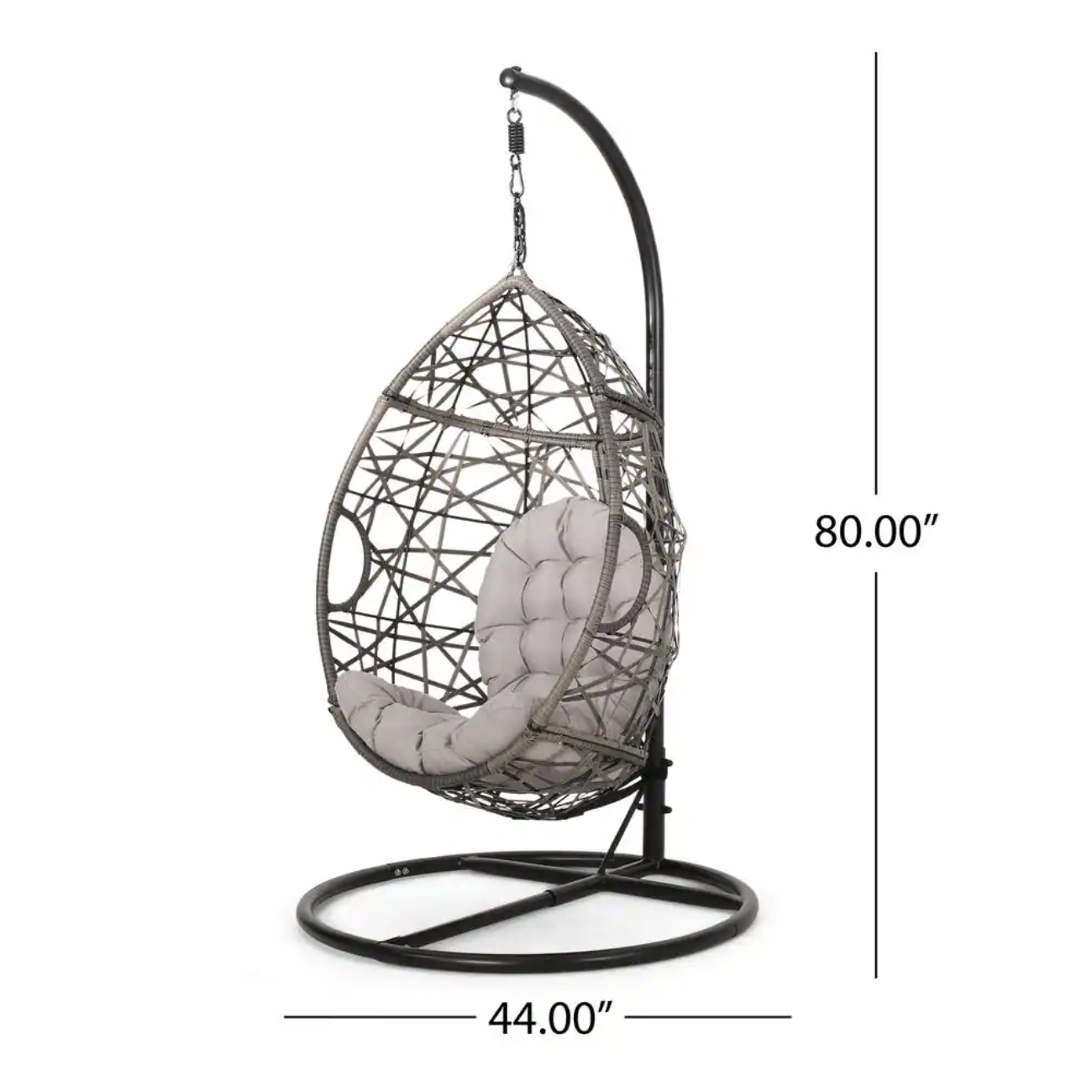 Noble House Stefanie Outdoor Wicker Tear Drop Gray and Black Hanging Chair