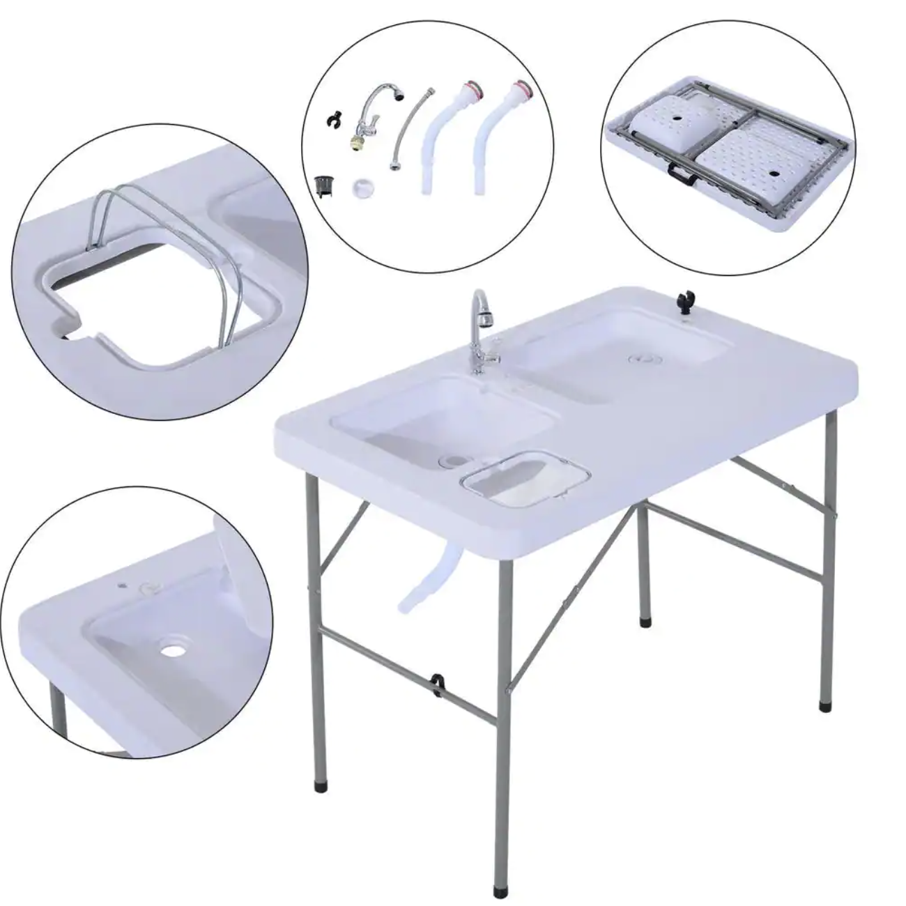 Outsunny 40 in. Portable Folding Easy-Clean Camping Dish Sink with Faucet and 2 Water Basins
