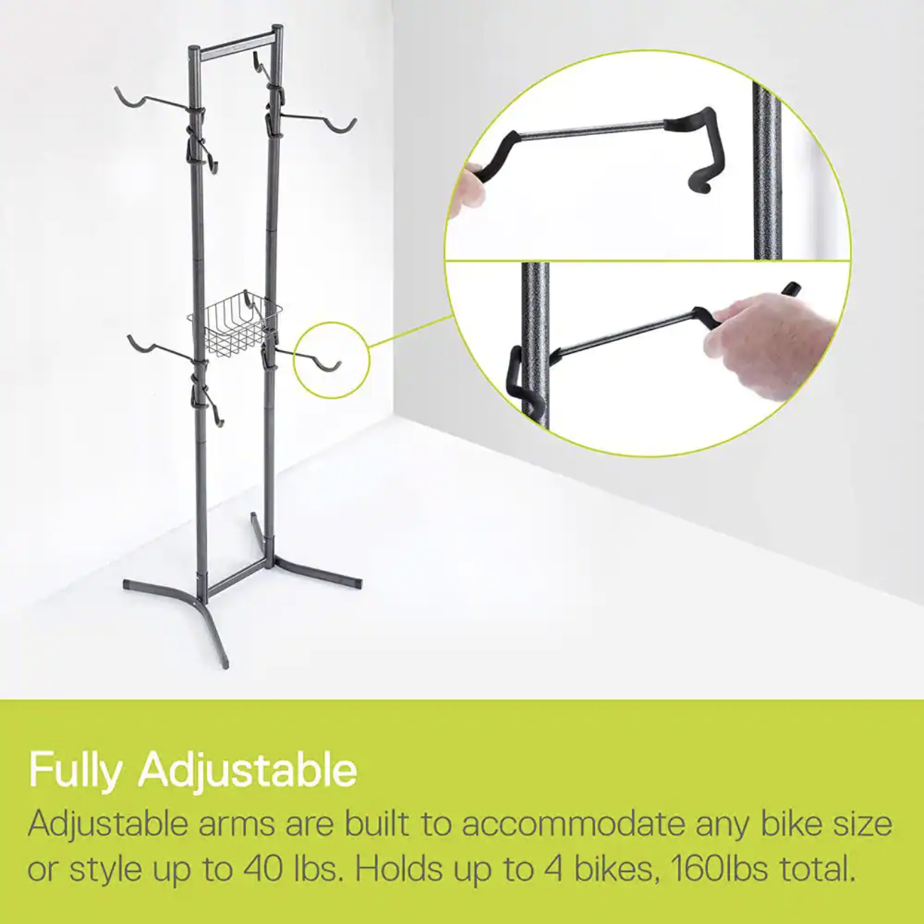 Delta 4-Bike Freestanding Bicycle Storage Rack with Basket