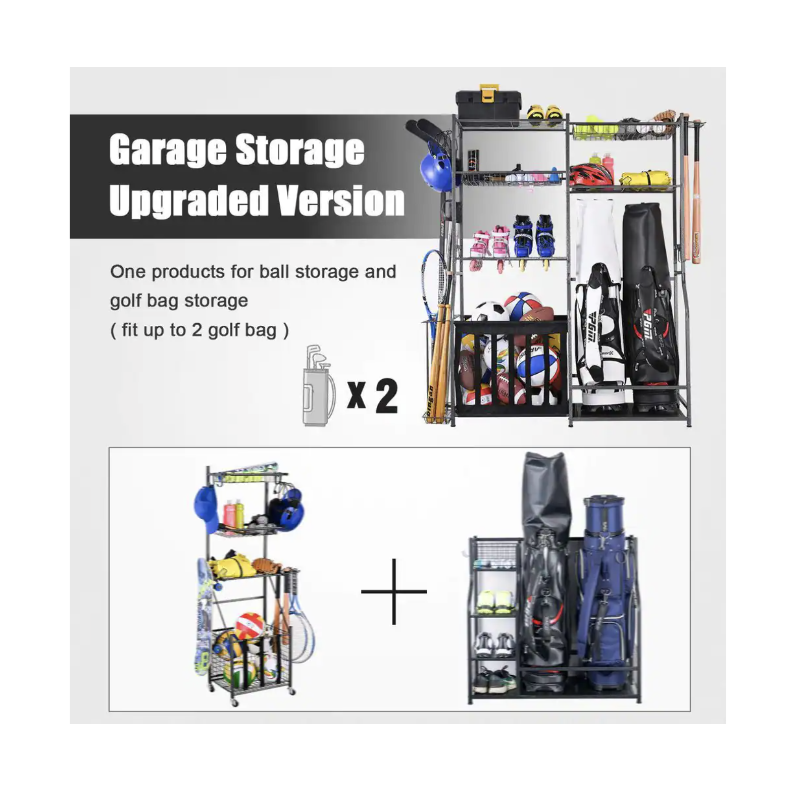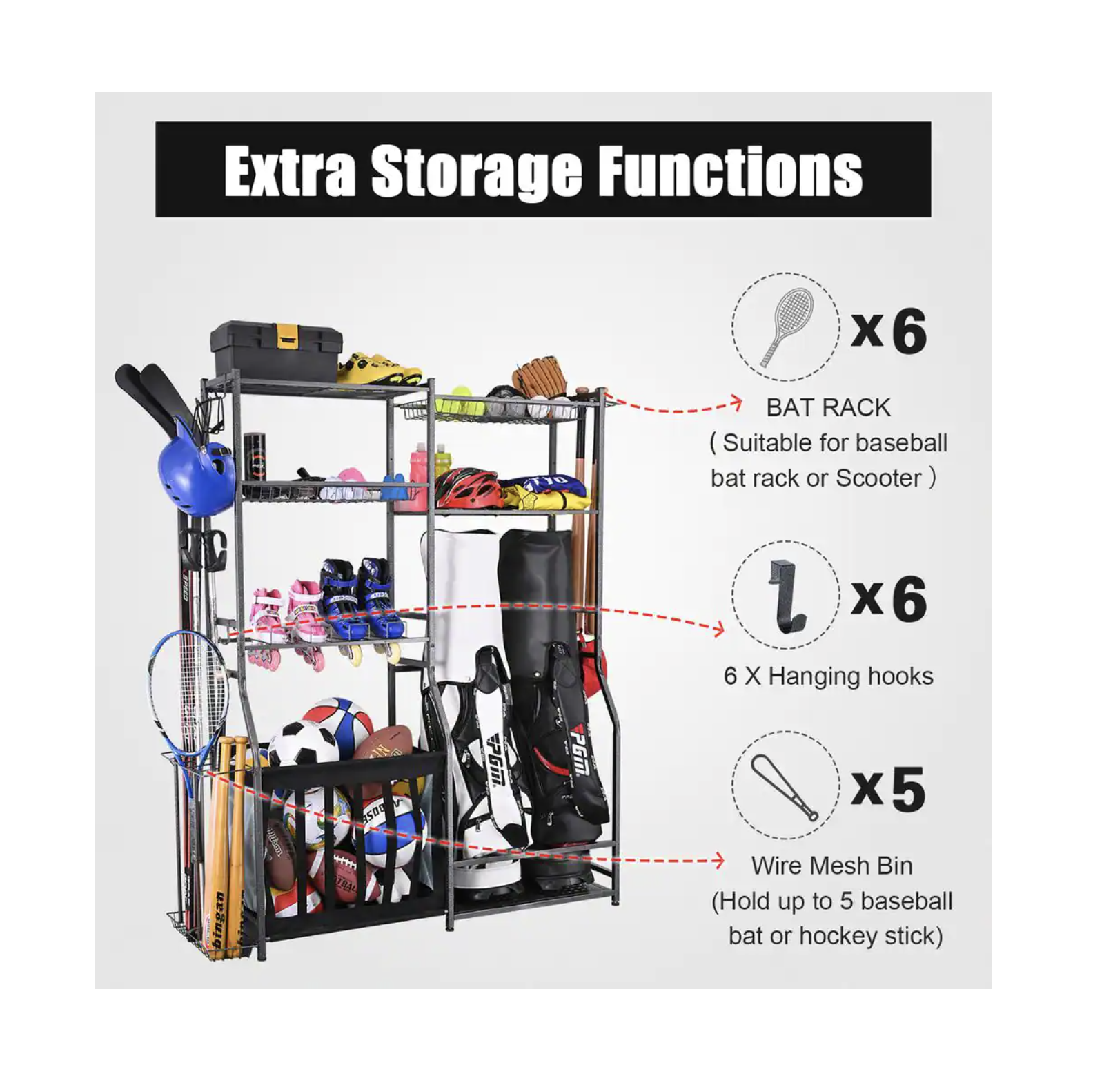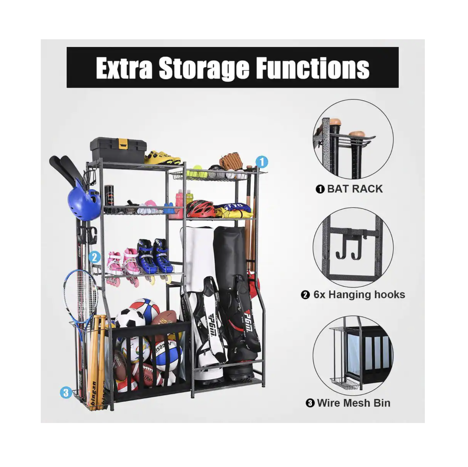 Ltmate 265 lbs. Weight Capacity Sports Organizers Rack For Garage Storage