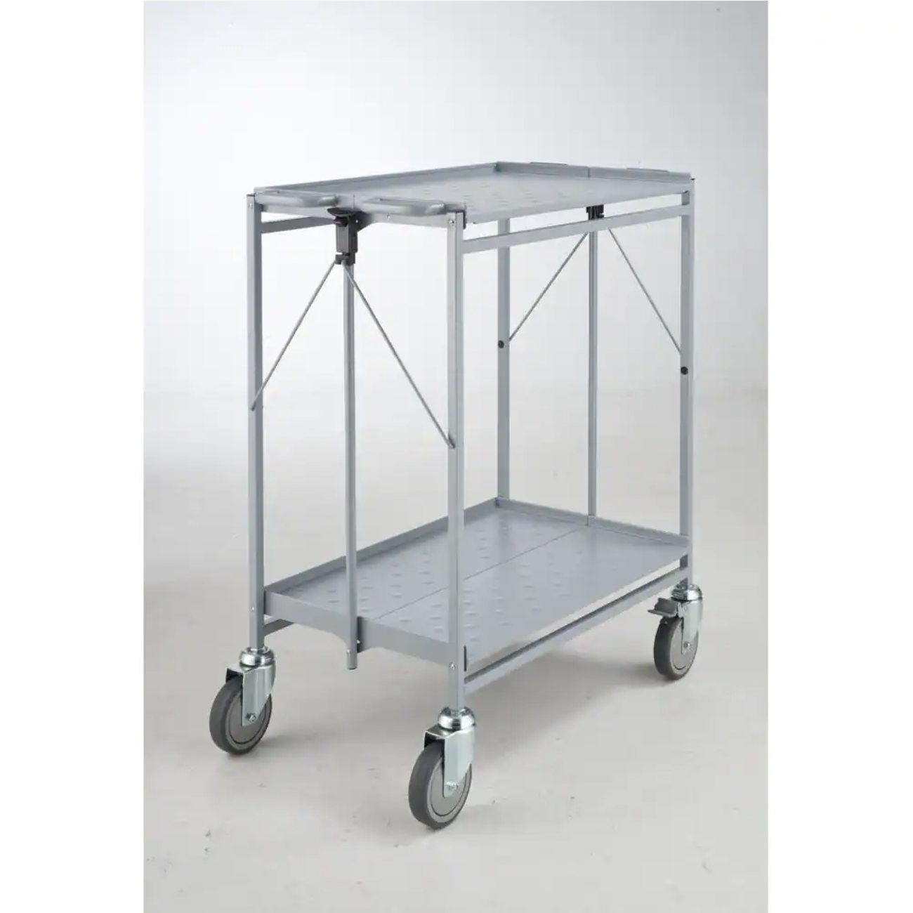 Master Grade Folding Carts. 2-shelf Grey. 550 lb. Capacity. Swivel Caster Size 5 in. x1.5 in. with 2 Brakes