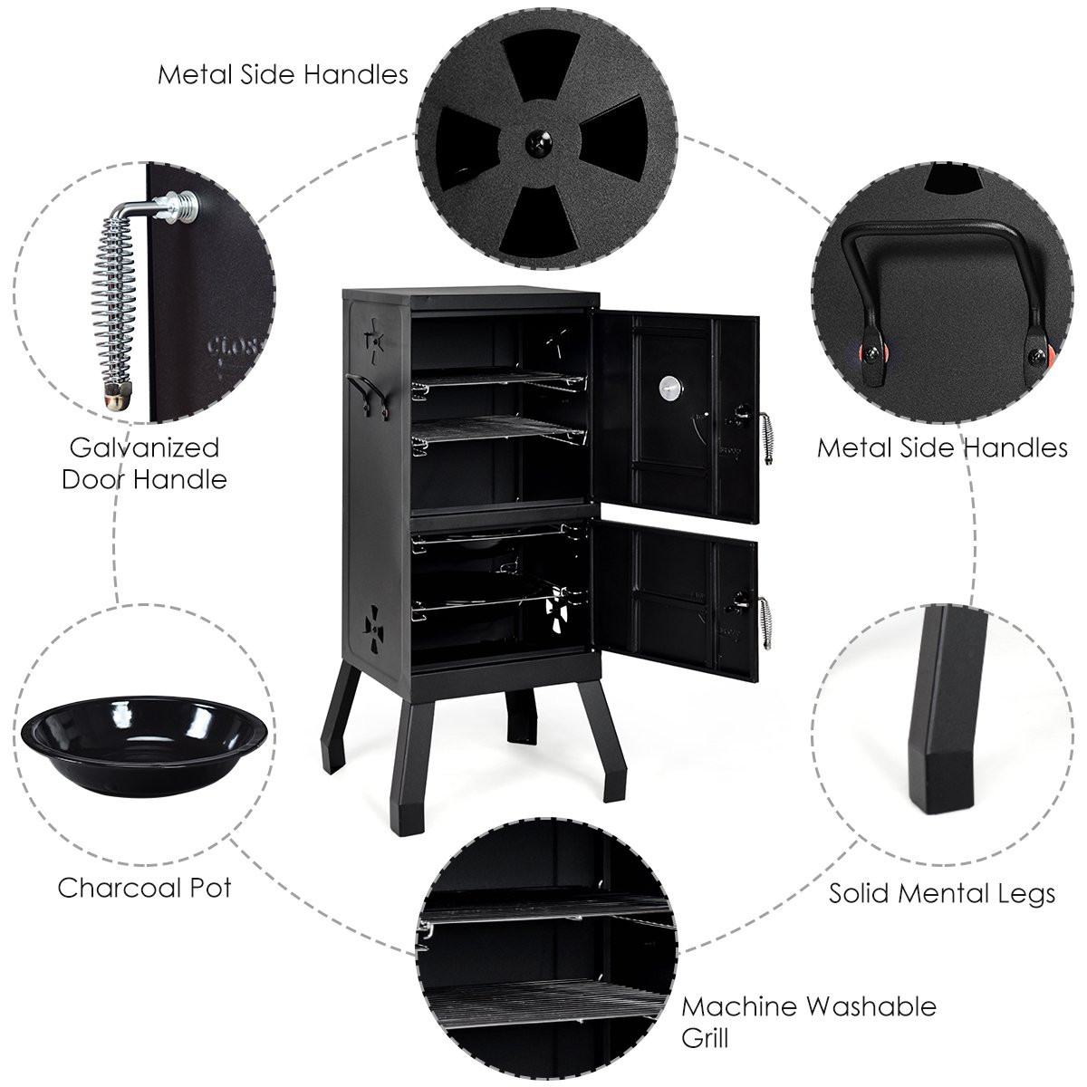 Costway OP3927 Vertical Charcoal Smoker BBQ Barbecue Grill w/ Temperature Gauge Outdoor Black
